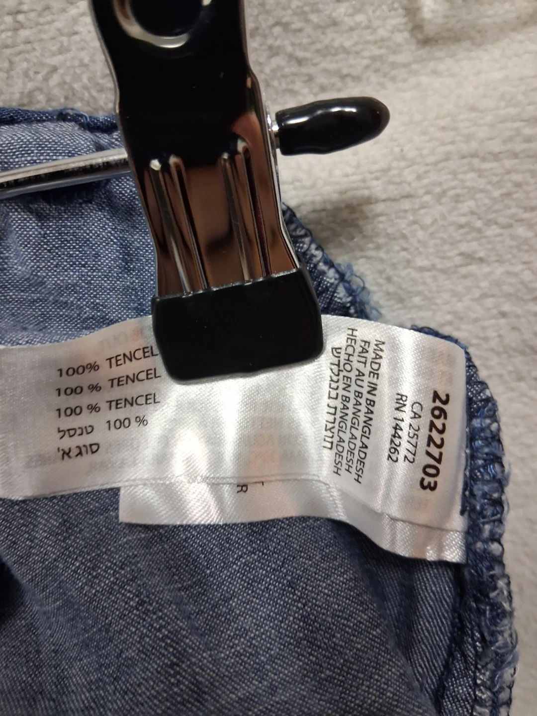 These are comfortable wide-leg jeans from Devoted. They're a light wash denim with an elastic waistband for easy wear. Made in Bangladesh.