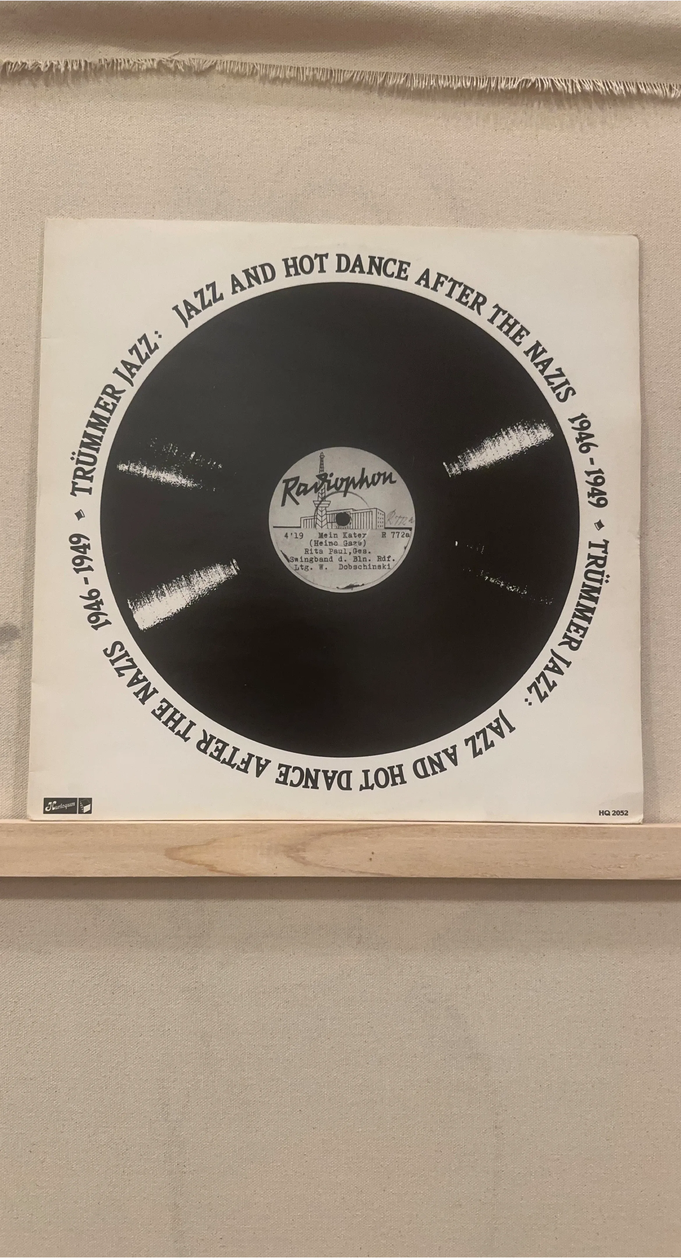 This is a Harlequin record titled "Trümmer Jazz: Jazz and Hot Dance After the Nazis 1946-1949". It features the song "Mein Kater" by Rita Paul with the Swingband d. Bln. Rdf. conducted by W. Dobschinski. The record number is R 772a and the catalog number is HQ 2052.