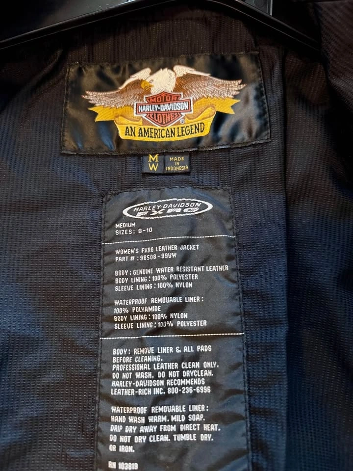 This is a like-new, authentic Harley Davidson FXRG leather jacket. It was purchased for my girlfriend years ago and has never been used. It's a great motorcycle and functional jacket. Please see all pictures.