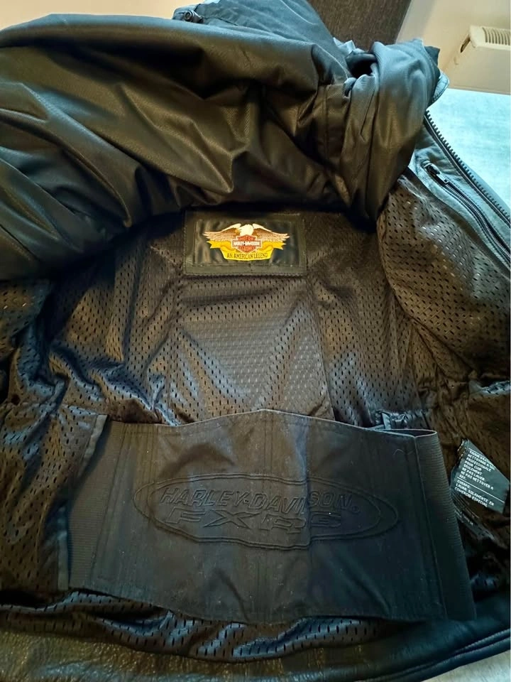This is a like-new, authentic Harley Davidson FXRG leather jacket. It was purchased for my girlfriend years ago and has never been used. It's a great motorcycle and functional jacket. Please see all pictures.
