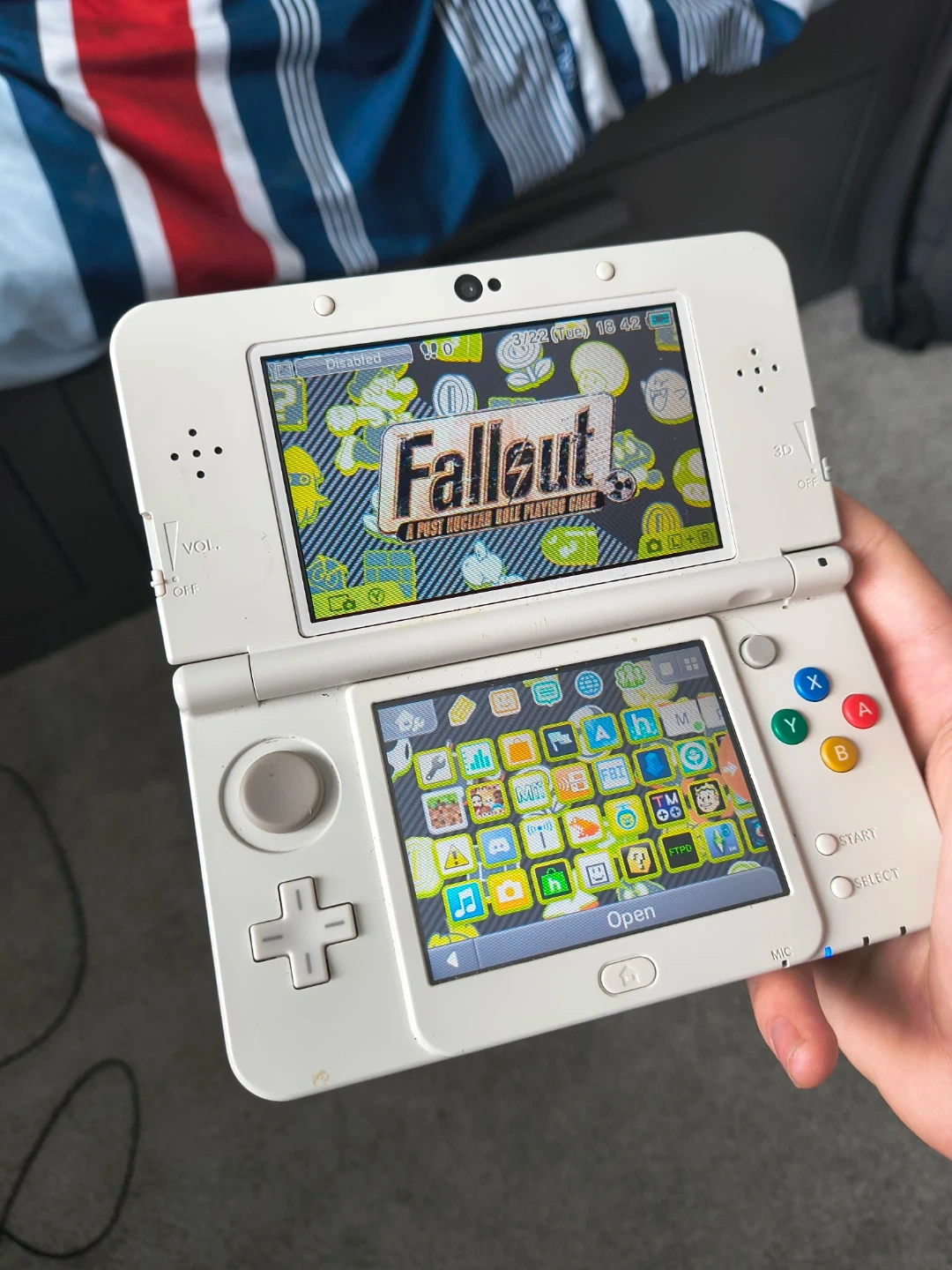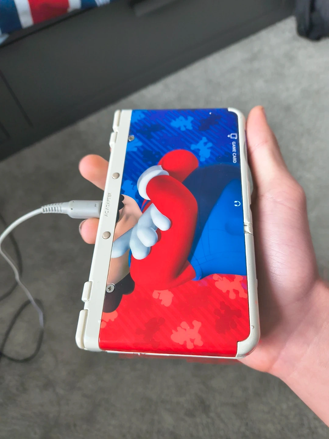 White Nintendo 3DS with Mario edition. It's a great handheld console for gaming on the go. Includes Minecraft game cartridge and charger.
