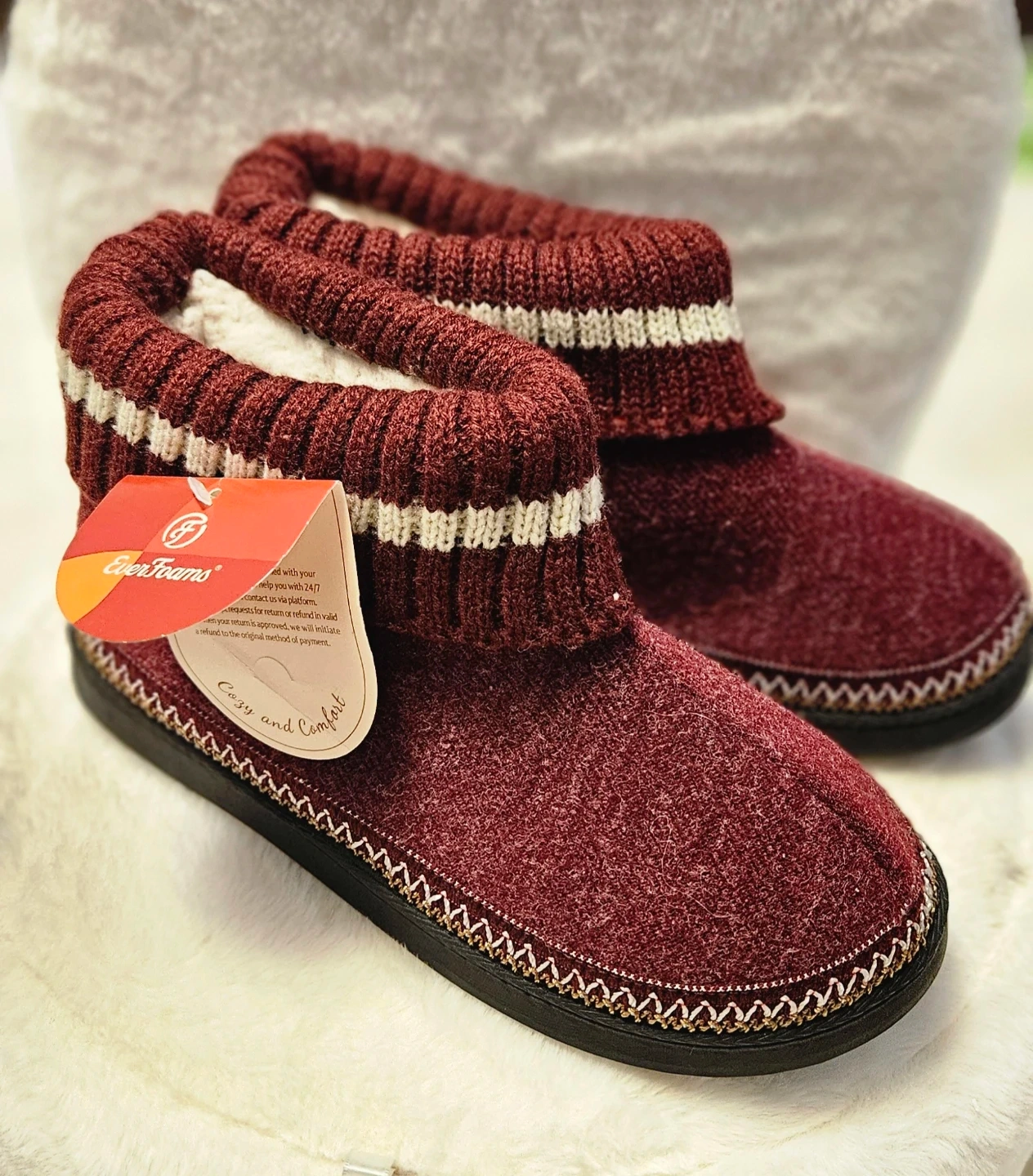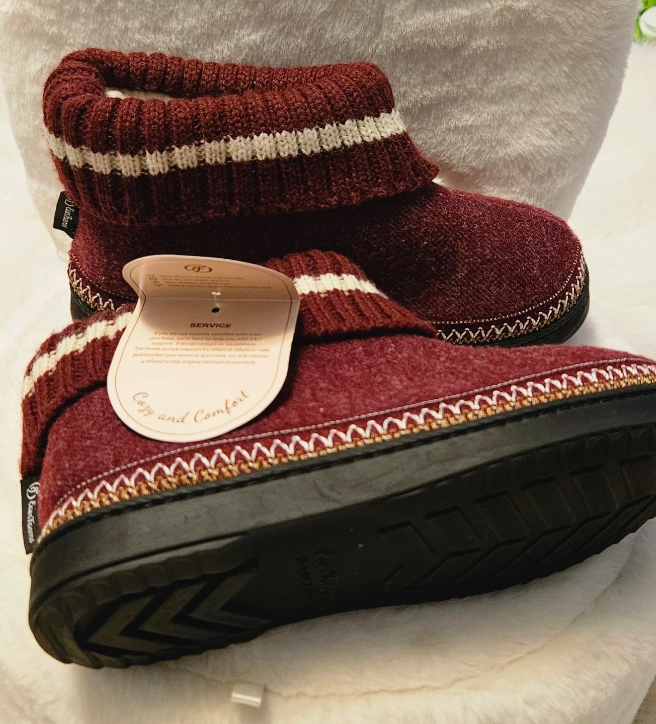EverFoams Women's Knit Bootie Slippers - Burgundy