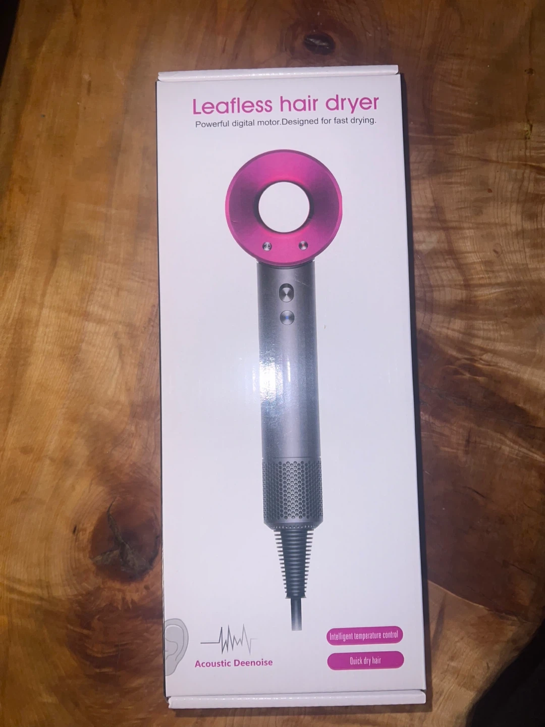 This leafless hair dryer has a powerful digital motor designed for fast drying. It features intelligent temperature control and acoustic denoising technology. Offers quick dry hair functionality.
