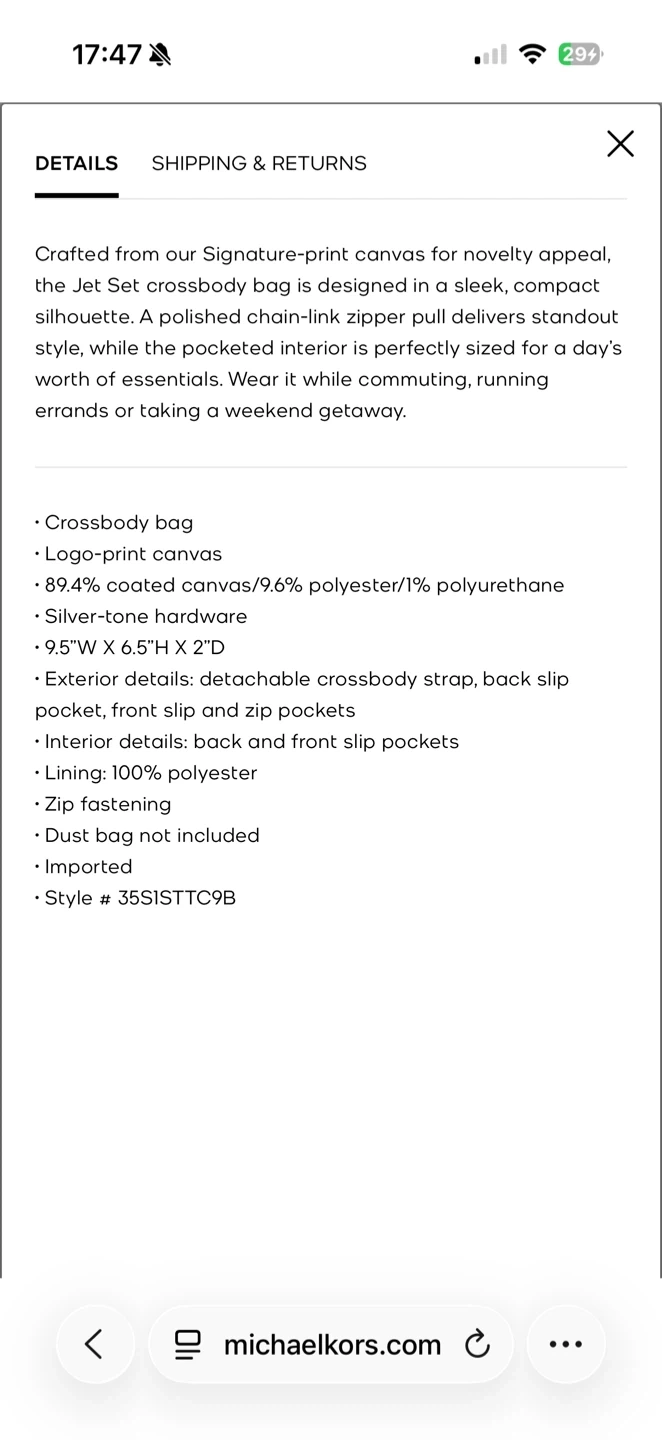 Michael Kors camera bag in black with signature monogram print. It features a zip-around closure and an adjustable shoulder strap. Interior is lined.