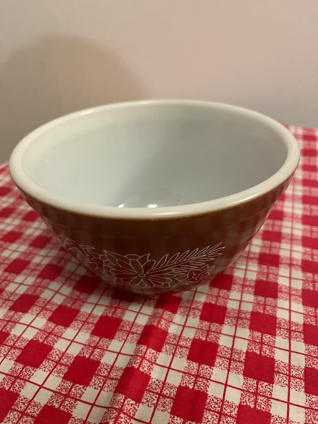 Vintage Brown Pyrex Mixing Bowl Woodland pattern brown