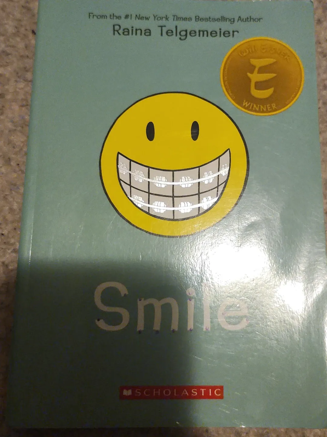 This is the graphic novel 'Smile' by Raina Telgemeier. It's a New York Times Bestselling author. Scholastic is the publisher.
