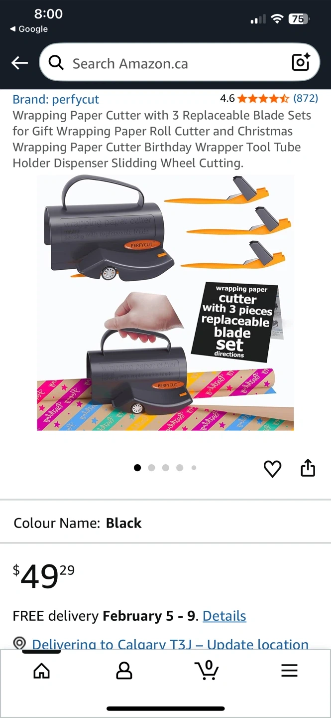 This Perfycut wrapping paper cutter is designed for quick and easy cuts. It comes with 1 replaceable blade for long-lasting use. Fits all size rolls for convenience!