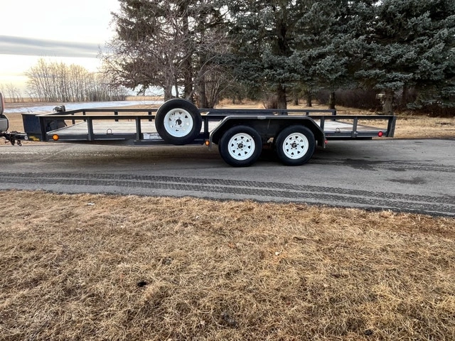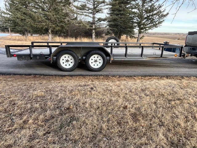 Load Trail, 18' Bumper pull trailer for sale. Excellent shape for the year. Comes with ramps, a winch, and newer tires. Trailer has sat for most of its life, used once a year.