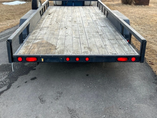 Load Trail, 18' Bumper pull trailer for sale. Excellent shape for the year. Comes with ramps, a winch, and newer tires. Trailer has sat for most of its life, used once a year.