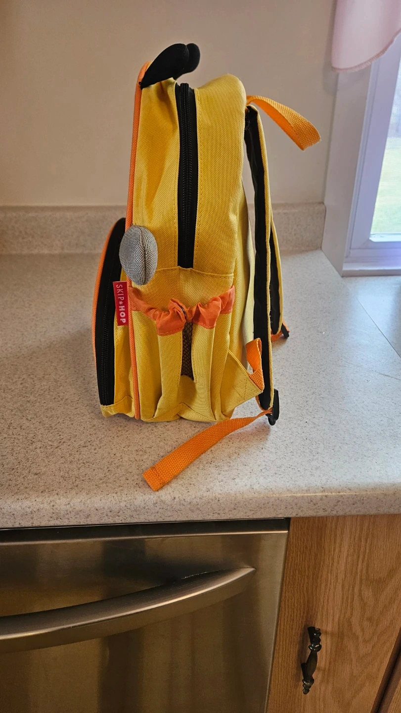 This cute yellow bee backpack is perfect for little ones. It has adjustable straps and a front zippered pocket for easy access to snacks. It's great for daycare or quick trips!