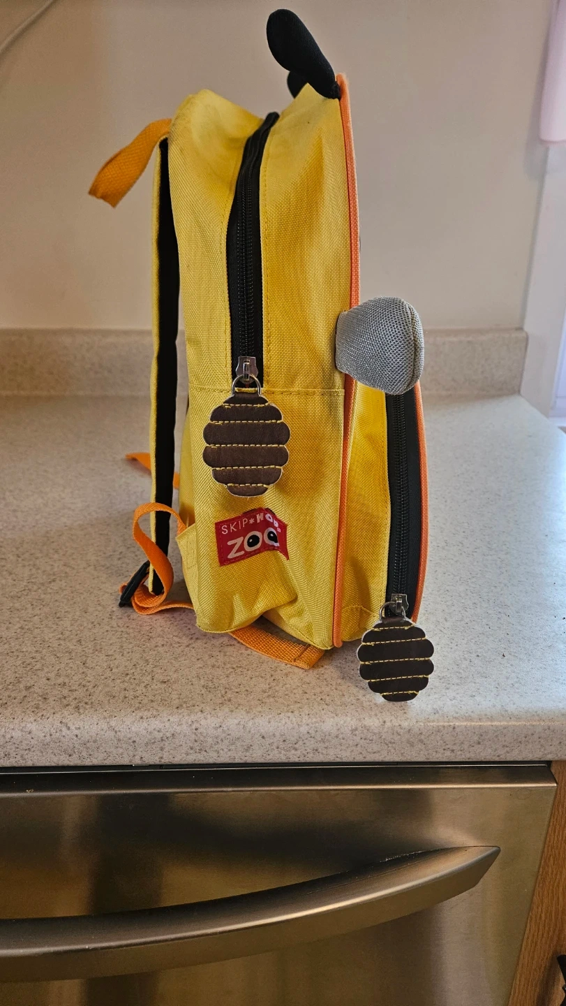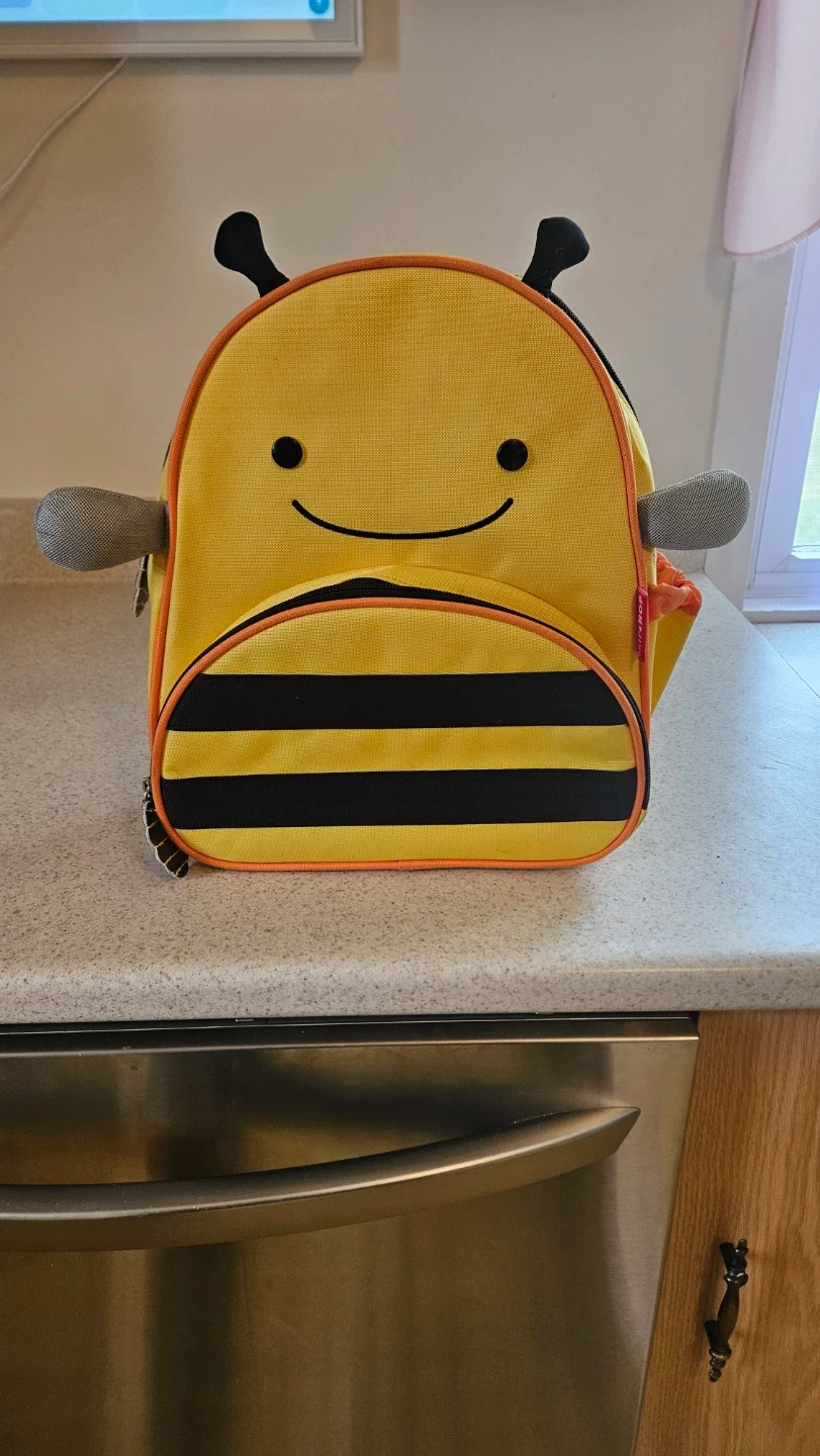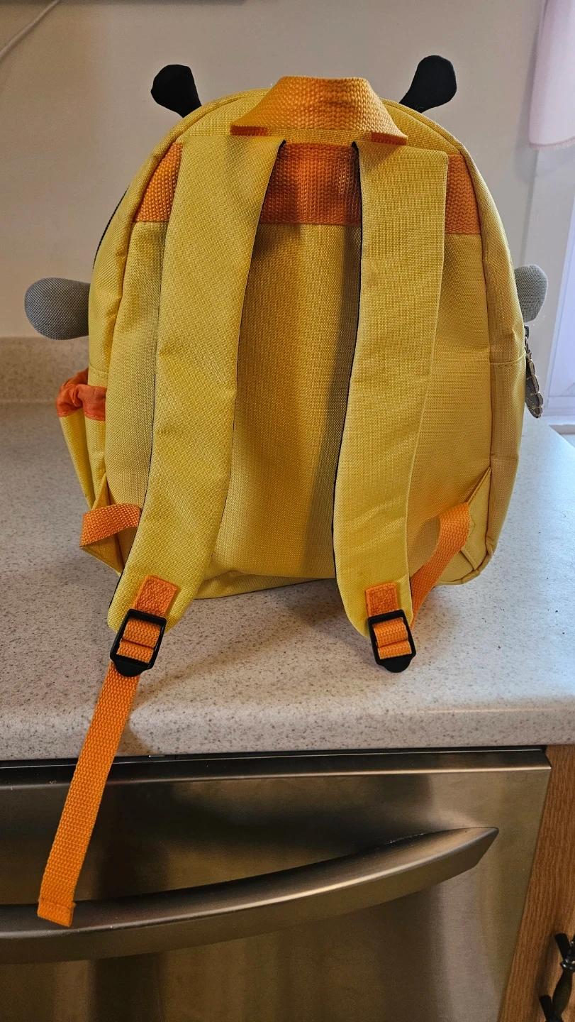 This cute yellow bee backpack is perfect for little ones. It has adjustable straps and a front zippered pocket for easy access to snacks. It's great for daycare or quick trips!