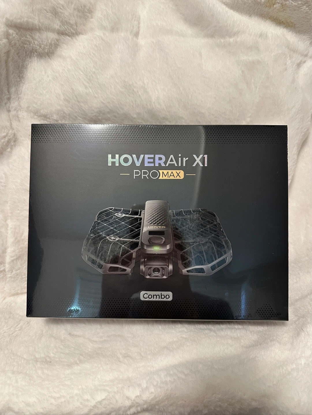 This is the HOVERAir X1 ProMax Combo drone kit. It includes the drone, two batteries, a charging cable, and a carrying case. It's designed for effortless aerial photography.