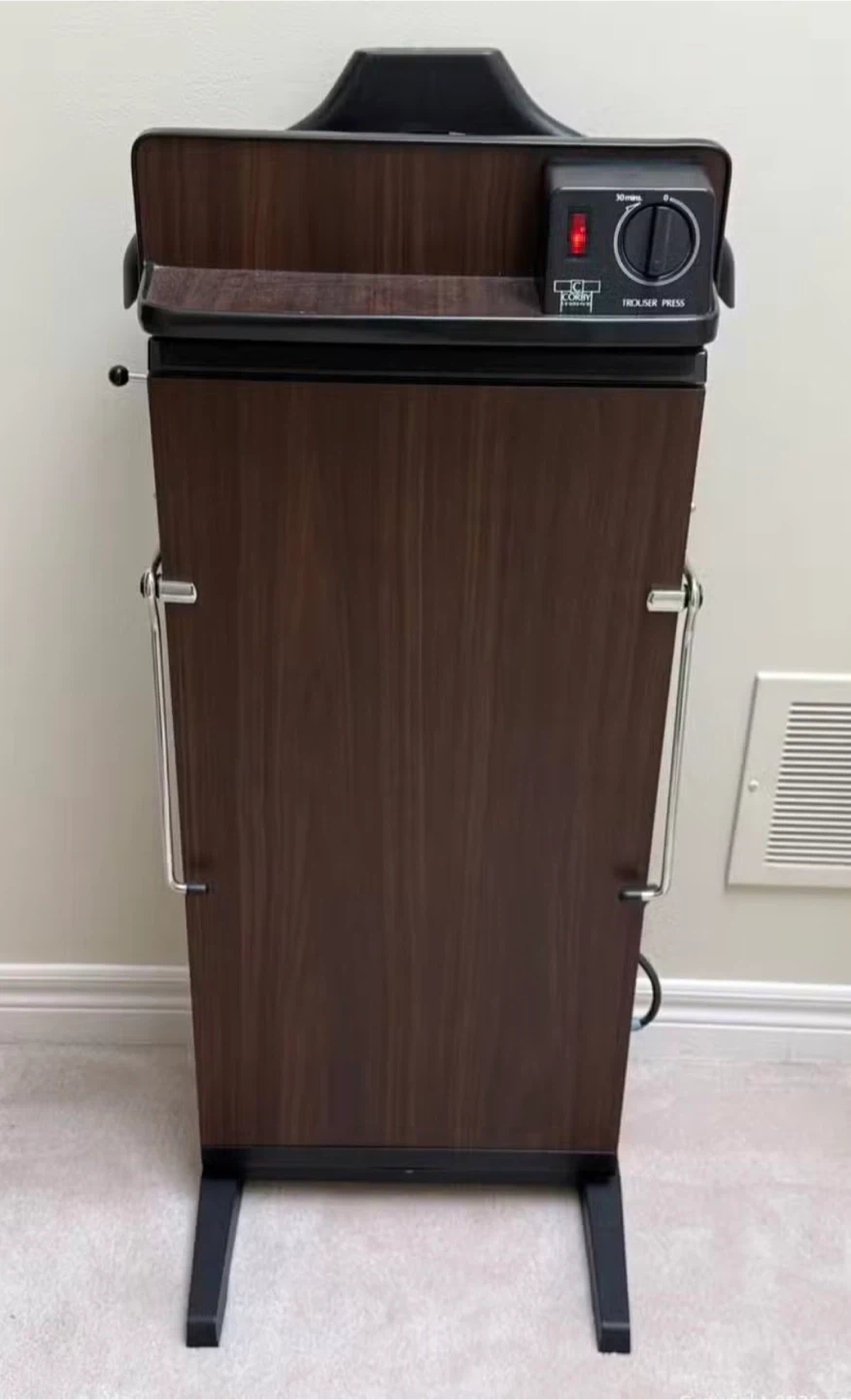 This Corby Trouser Press is in great condition. It features a wooden veneer finish and a timer control. It's perfect for keeping your trousers looking sharp and crease-free!