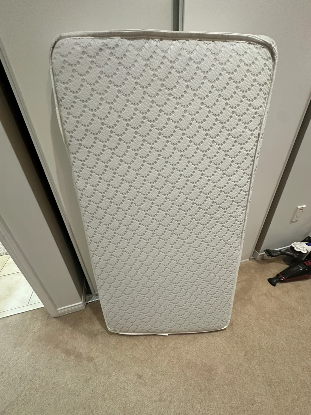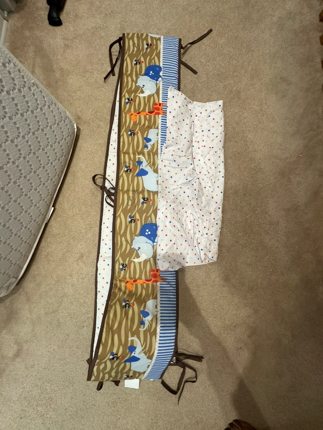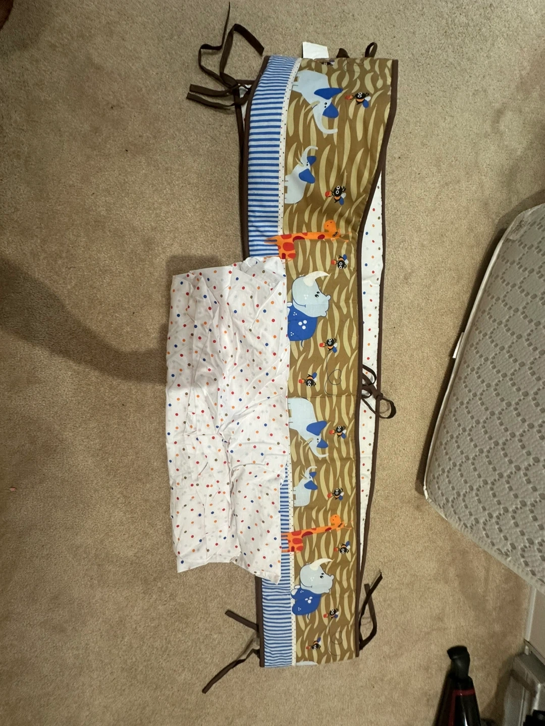 Grey baby crib Includes a crib mattress like new and bumper pad like new with a cute elephant design. Mattress protector is white with a subtle pattern. Great for a nursery!