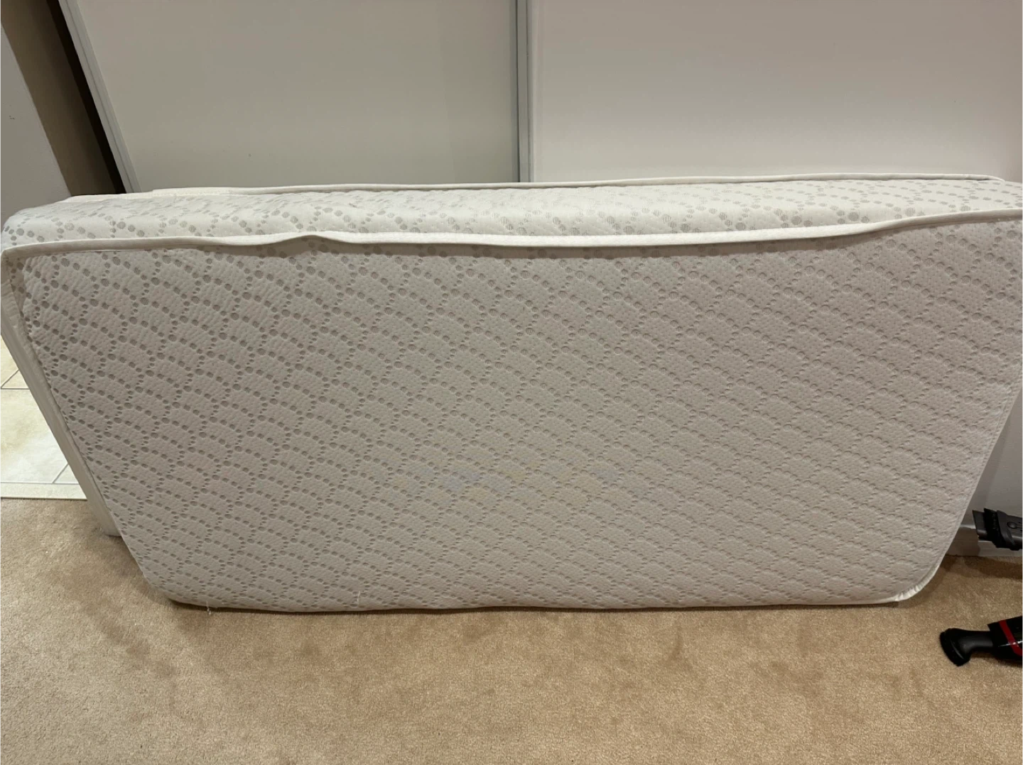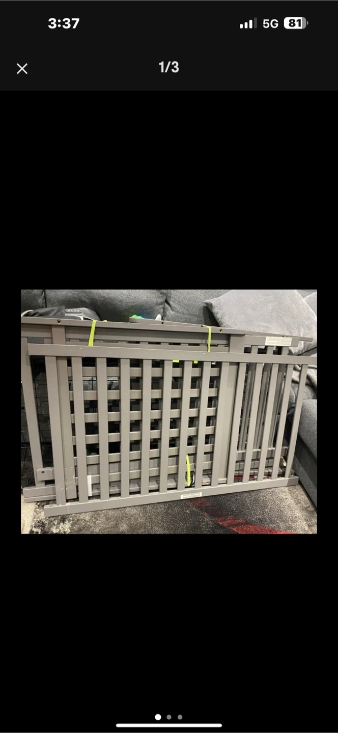 Grey baby crib Includes a crib mattress like new and bumper pad like new with a cute elephant design. Mattress protector is white with a subtle pattern. Great for a nursery!