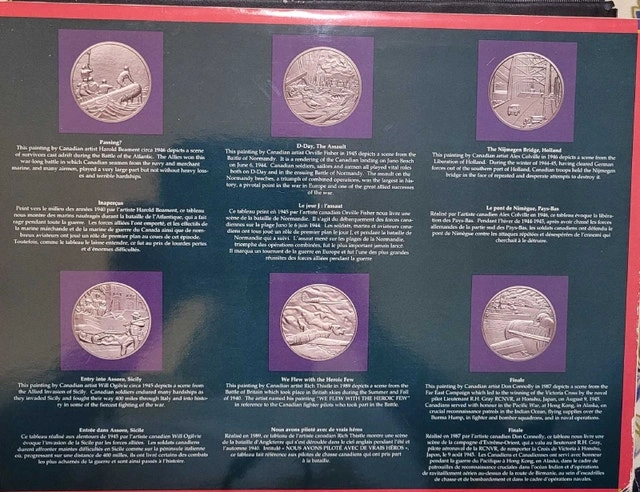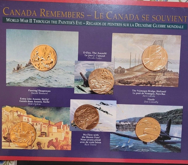 Canada Remembers World War II Medallion Set. All in very good condition and well protected. Set includes 6 medallions. See pictures for details.