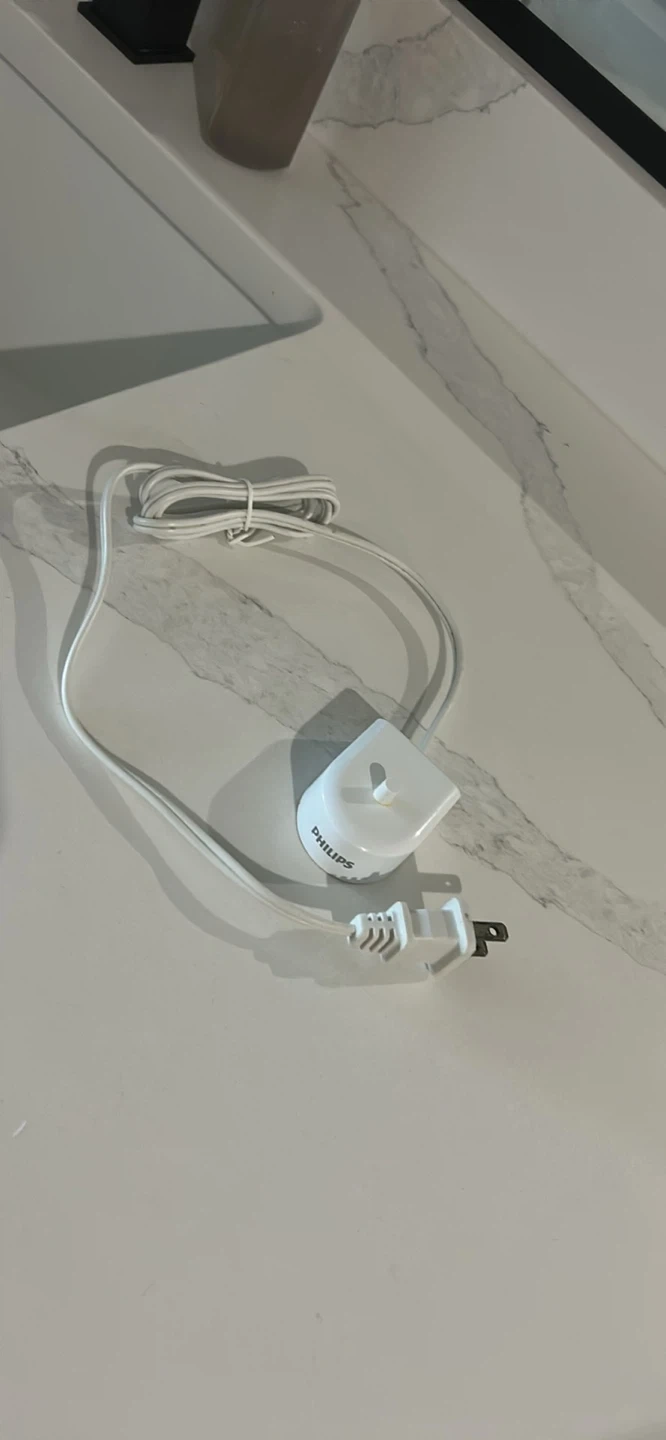 This is a white Philips electric toothbrush charging base with a cord and plug. It's for charging your toothbrush.