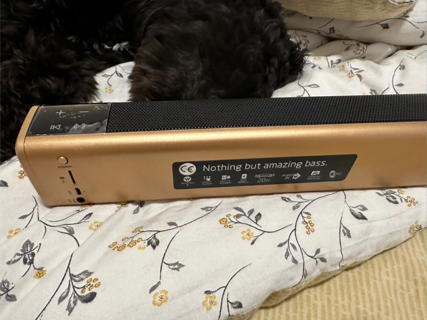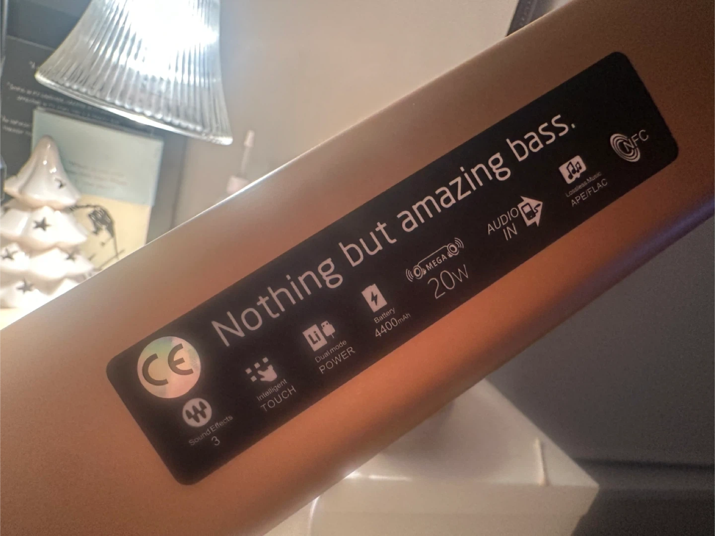This portable speaker boasts 20W of power and a 4400mAh battery. It supports APE/FLAC audio formats and features NFC connectivity. Multiple input options are available, including USB and AUX.
