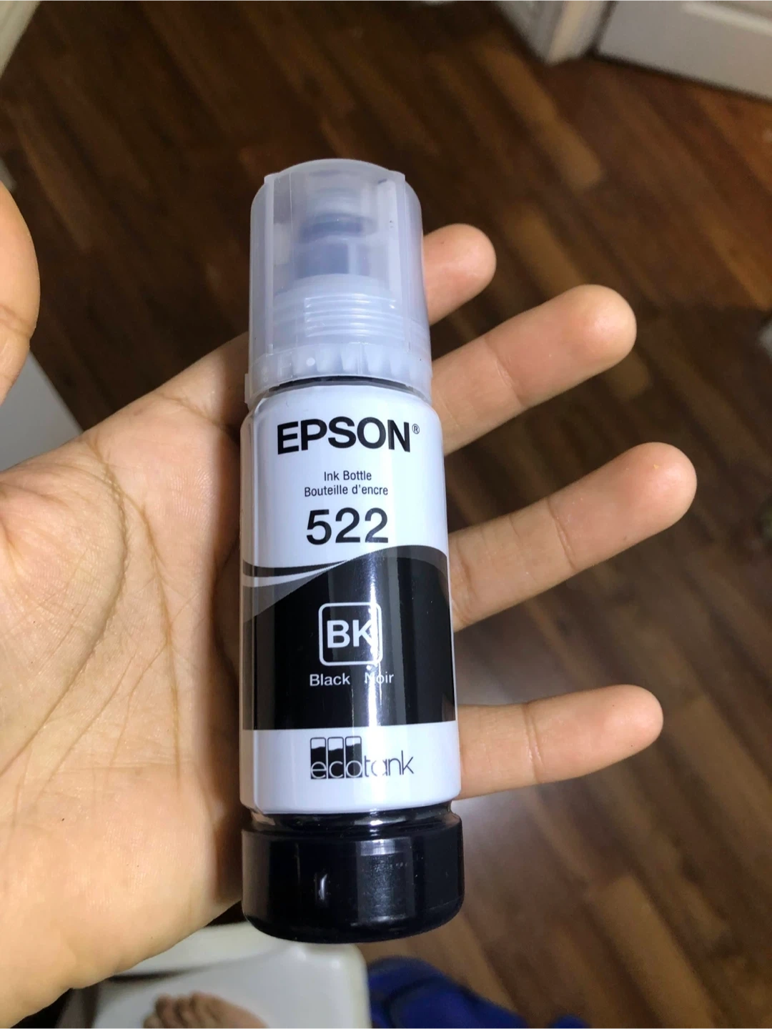 Selling a bottle of Epson 522 black ink. It's a 65ml bottle, perfect for your EcoTank printer! The best before date is April 2027.