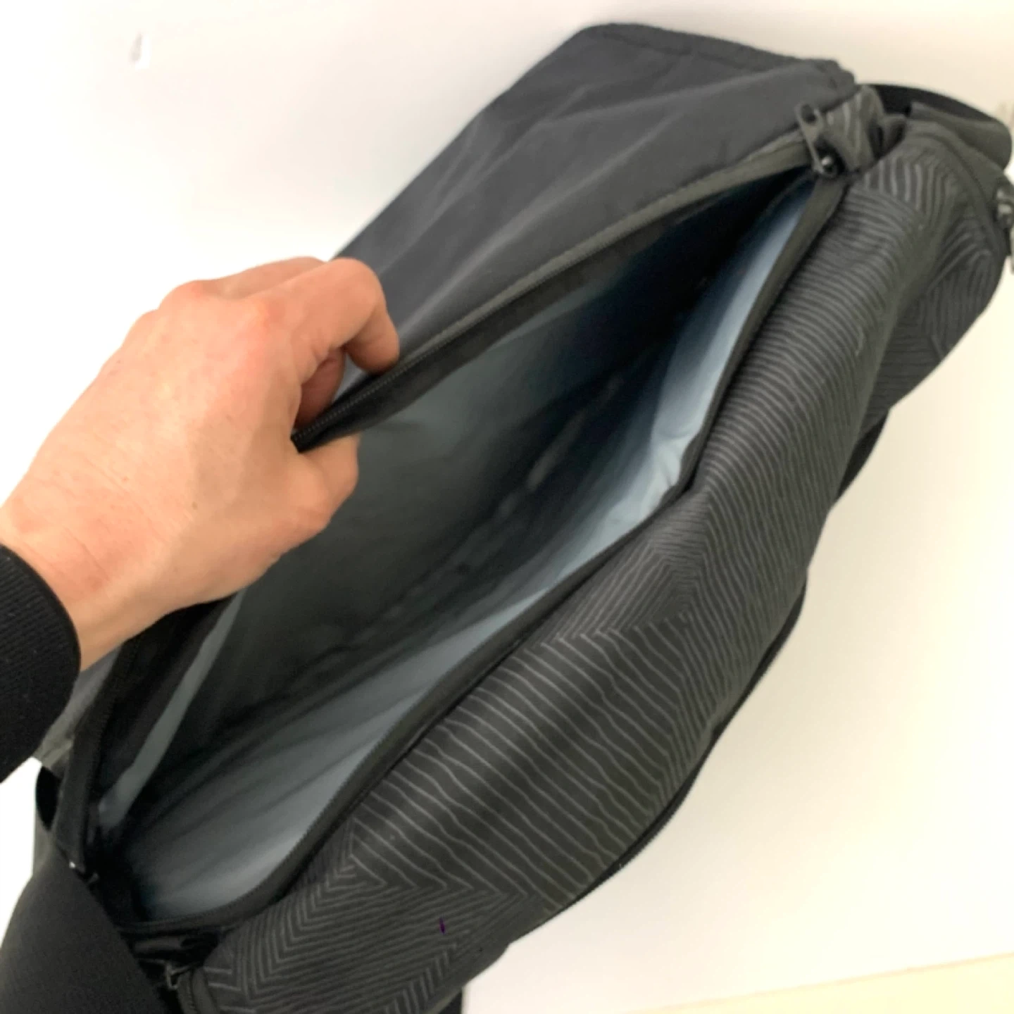 Messenger bag laptop bag crossbody style perfect for school, work, or everyday use. Black design with grey geometric pattern, adjustable strap, and multiple compartments makes it easy to carry essentials like laptop, books, or accessories while staying organized and comfortable on the go.