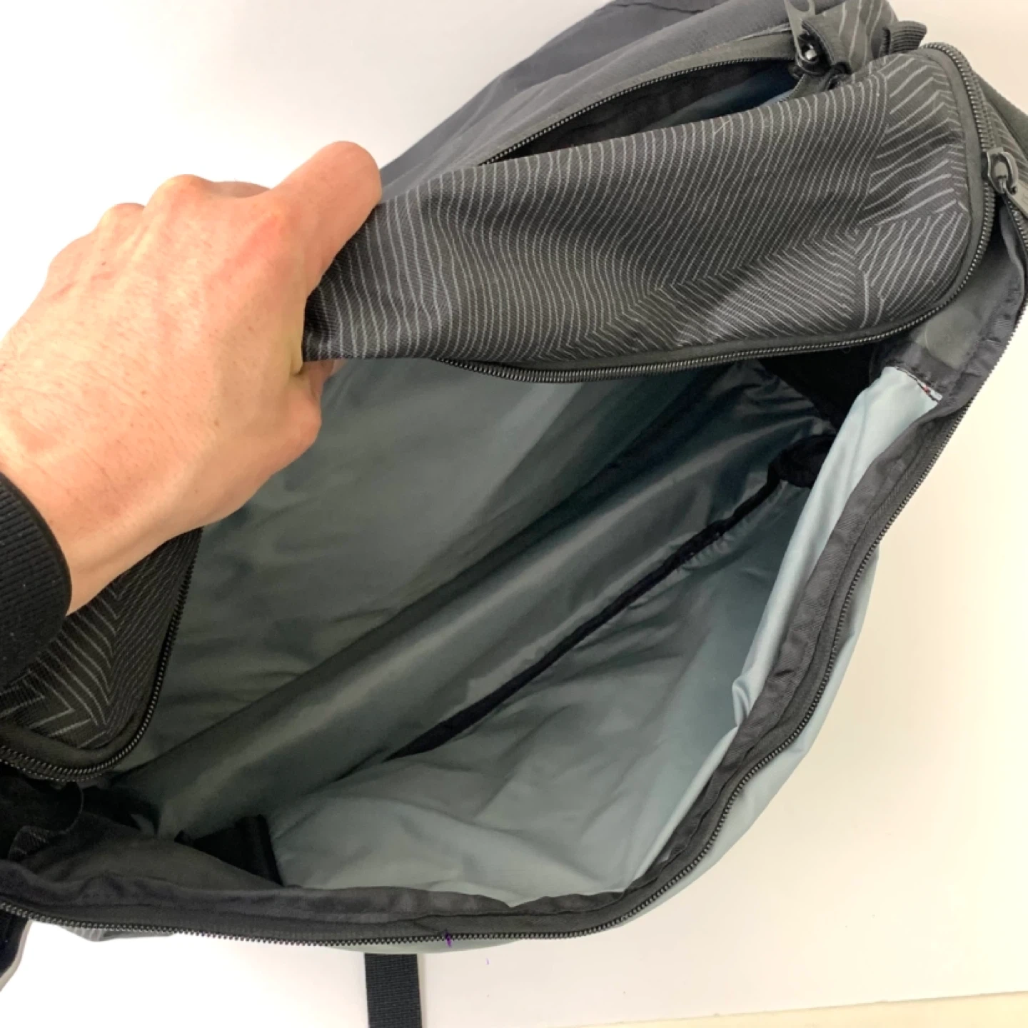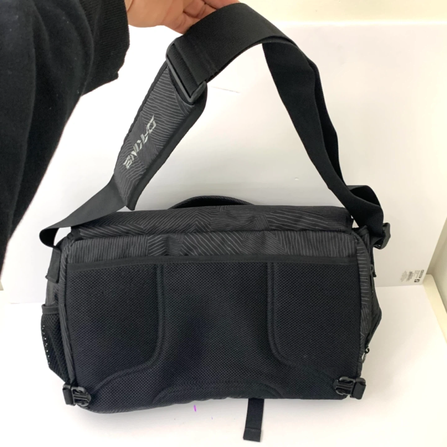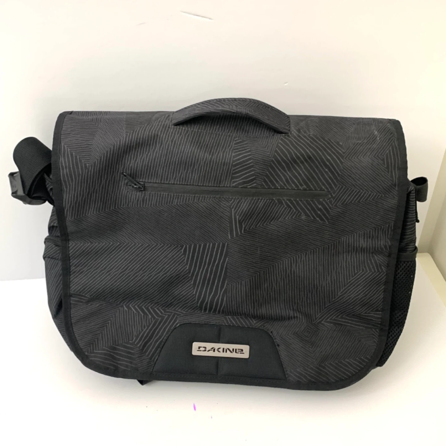 Messenger bag laptop bag crossbody style perfect for school, work, or everyday use. Black design with grey geometric pattern, adjustable strap, and multiple compartments makes it easy to carry essentials like laptop, books, or accessories while staying organized and comfortable on the go.