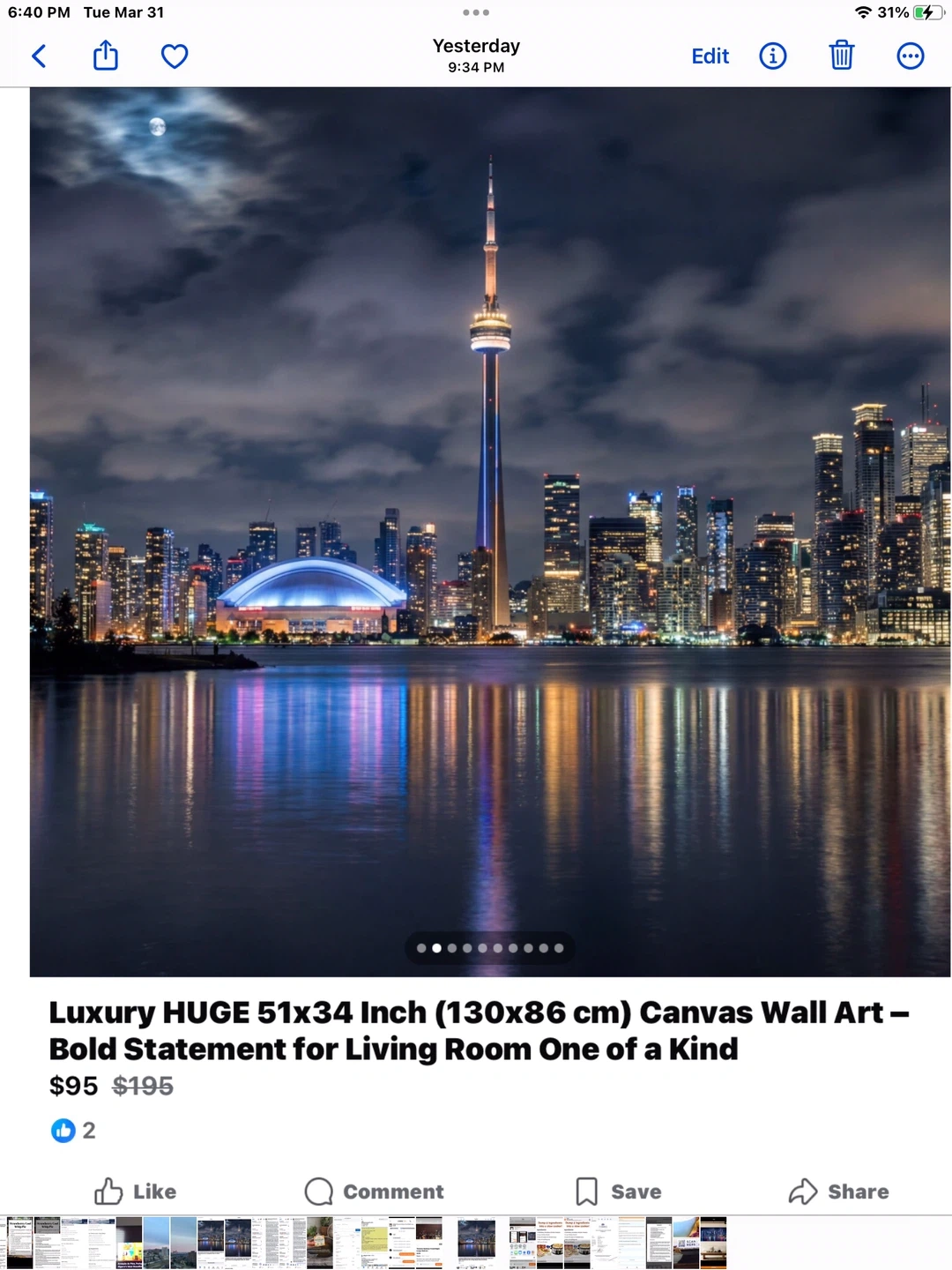 HUGE 51x34 Inch Canvas Wall Art - Toronto Skyline