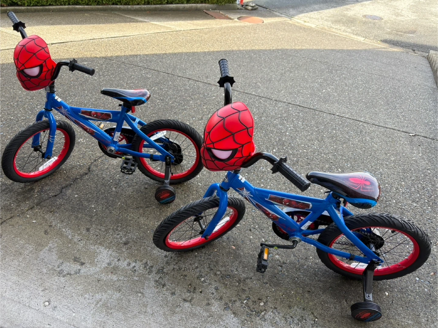Selling 2 Spiderman-themed kids bikes in great condition! It features a cool Spiderman design and is perfect for young riders learning to balance and pedal. The bike is blue and red with Spiderman graphics throughout. Ready for a new home!