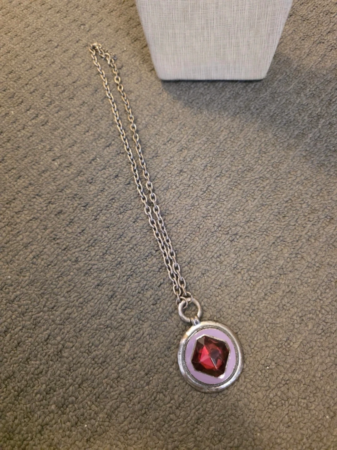 Silver Tone Pendant Necklace with Purple Red Gem