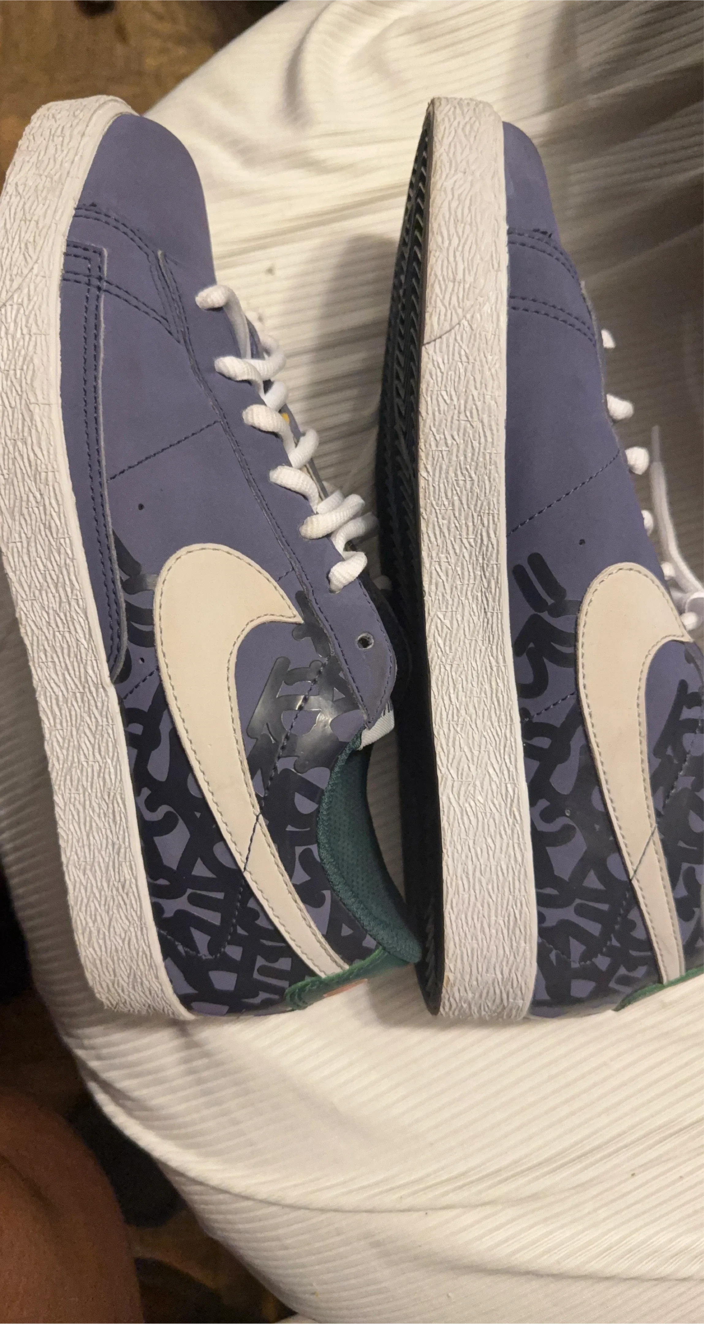 Selling a pair of Nike NYX BLADE LOW 2008. The shoes are purple with a white swoosh and a black and purple design on the side. The sole is white with a green bottom. Great for skating or just everyday wear! i’m located at Lawrence and Overture check my other listing please.