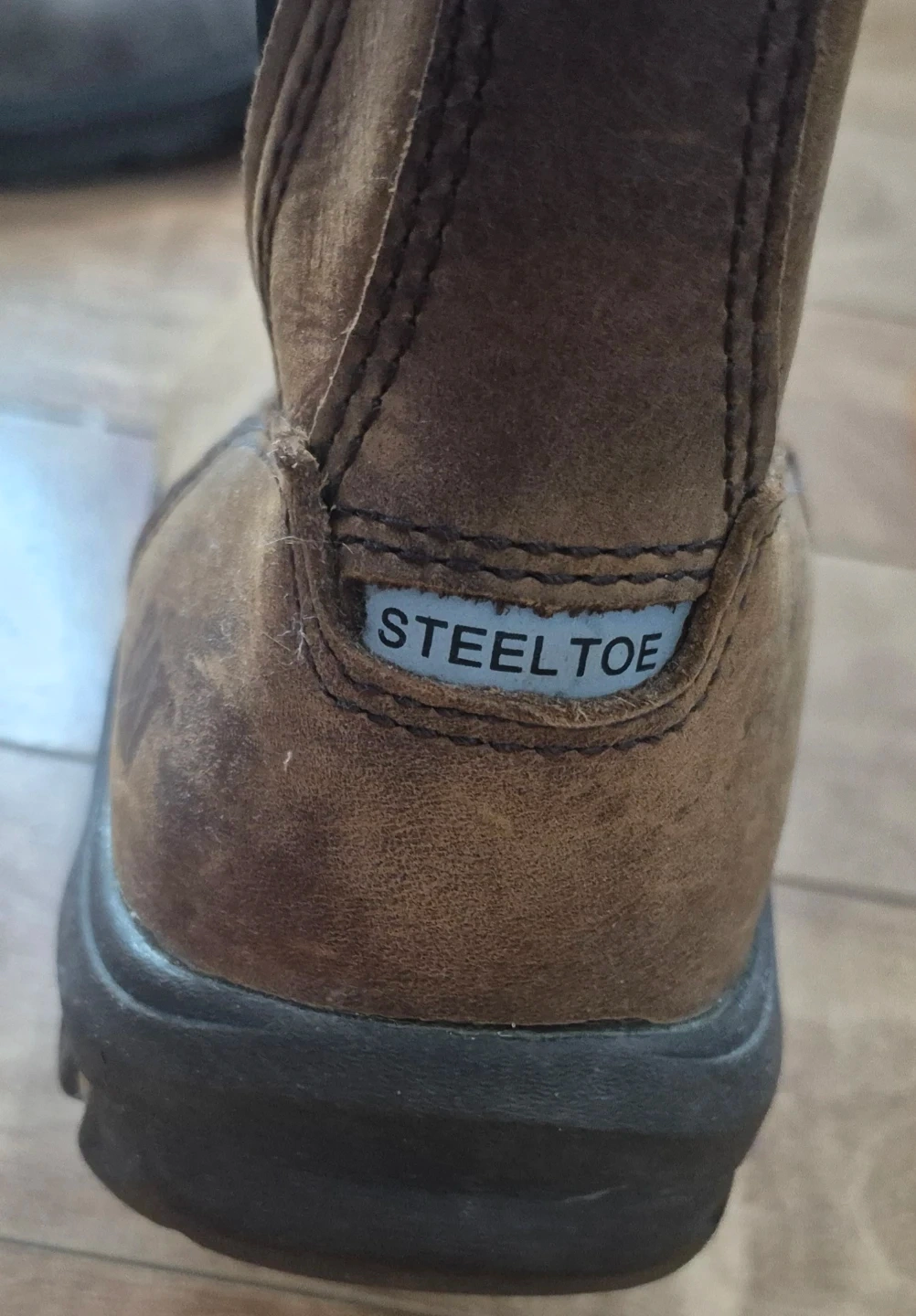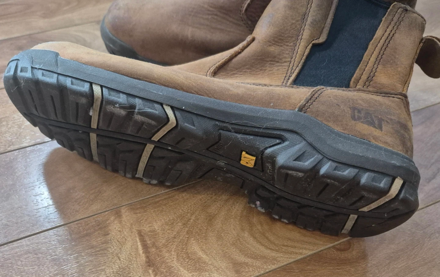 Selling a pair of CAT steel toe work boots in brown leather. They are in used condition, as you can see from the soles, but still have lots of life left. Size 9 US.