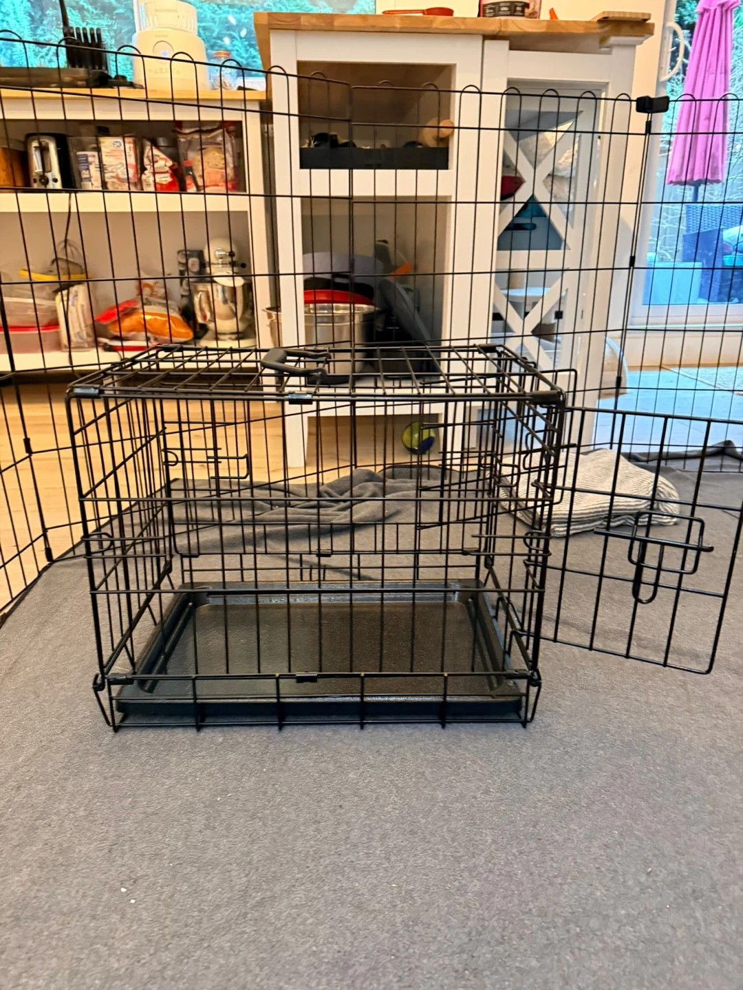 Black Wire Dog Crate with Tray