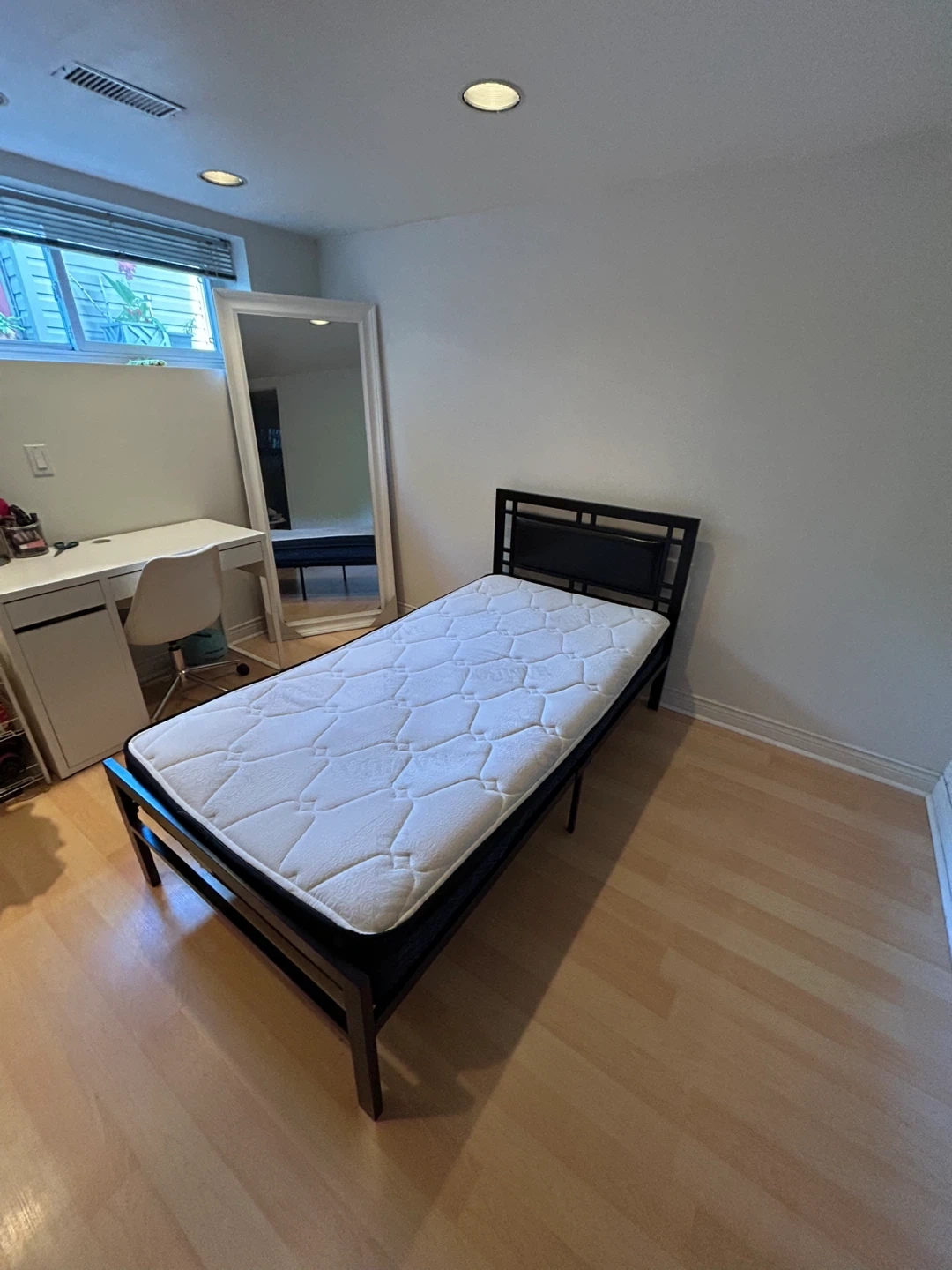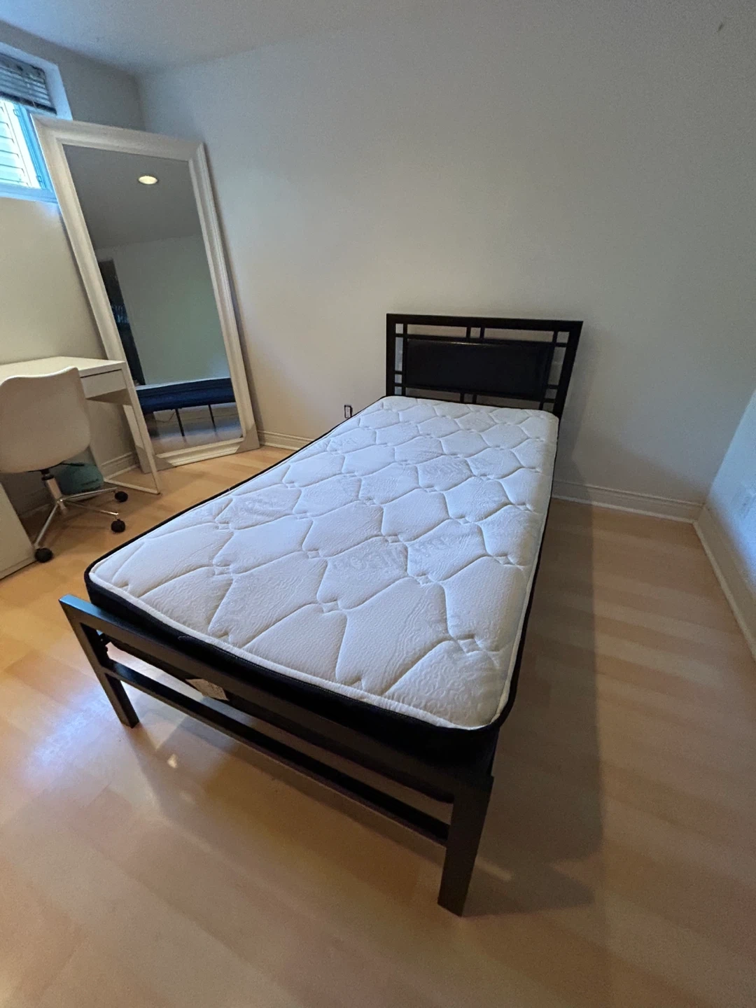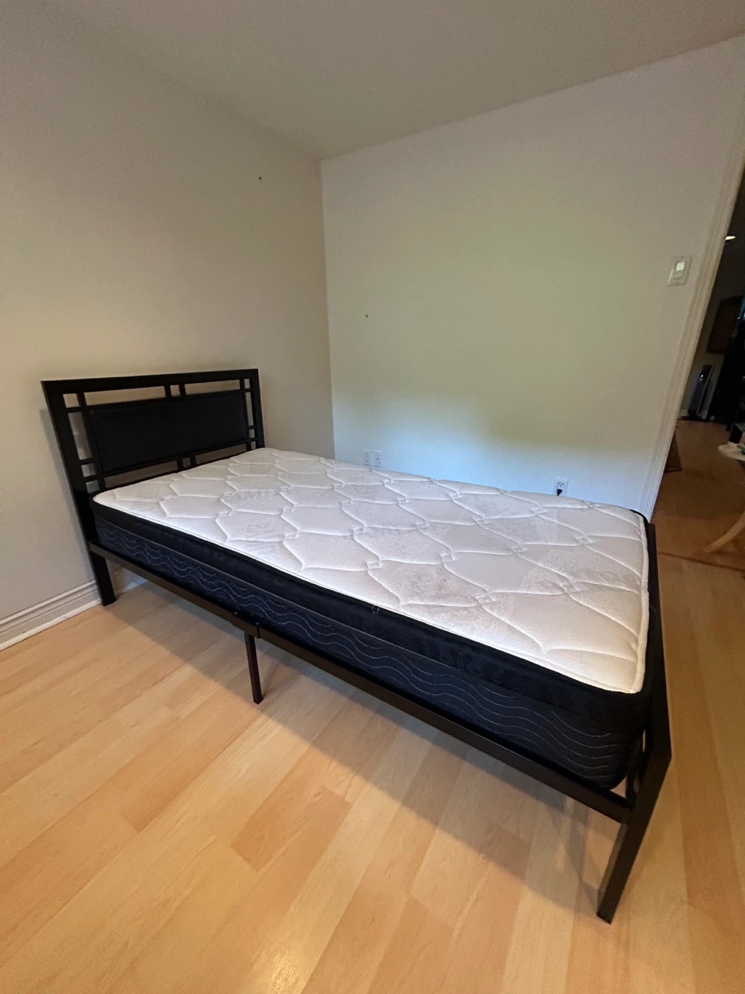 Selling a single bed frame and mattress. The frame is black metal in good condition. The mattress is also included, making it a complete set for your bedroom or guest room