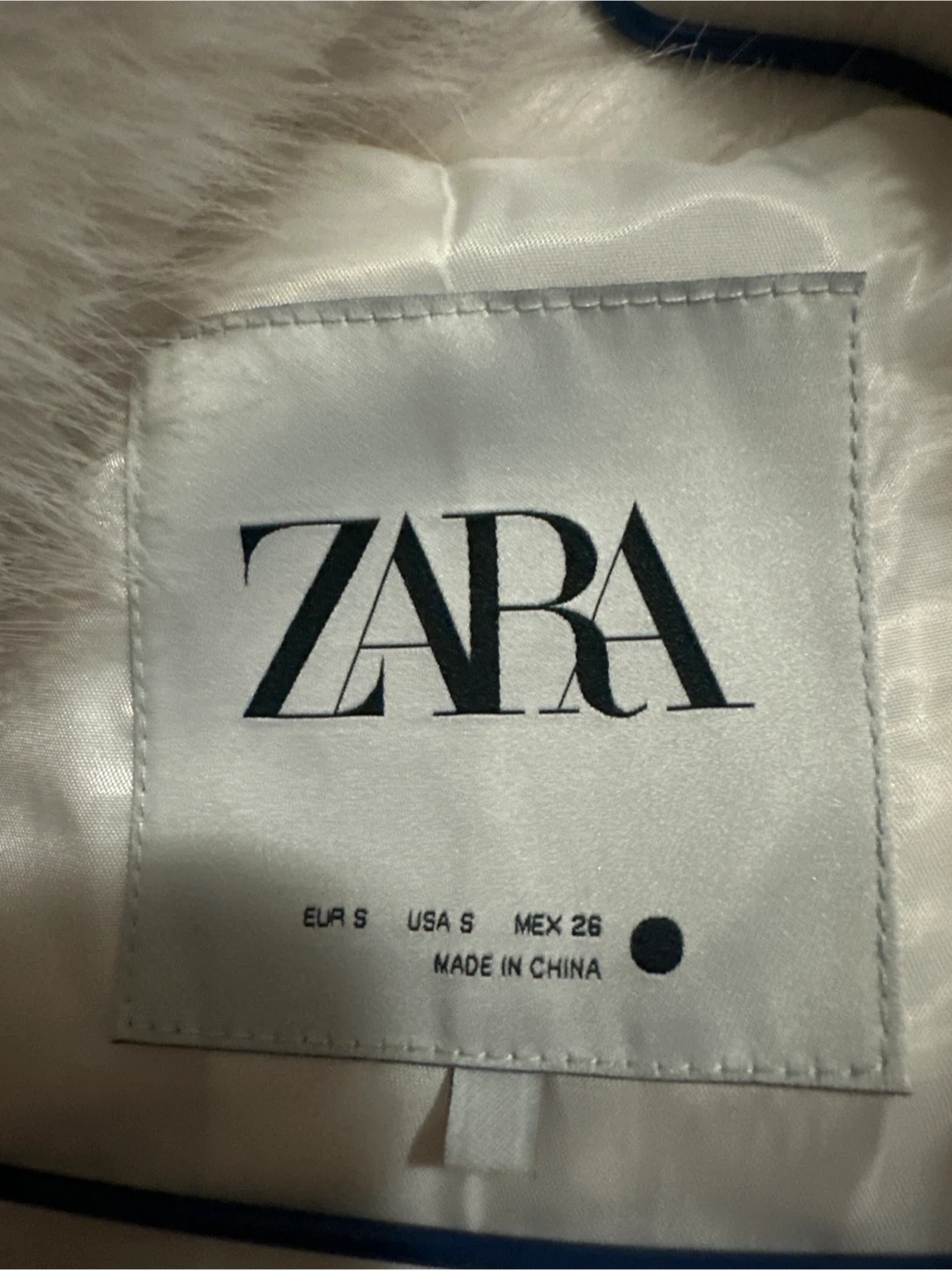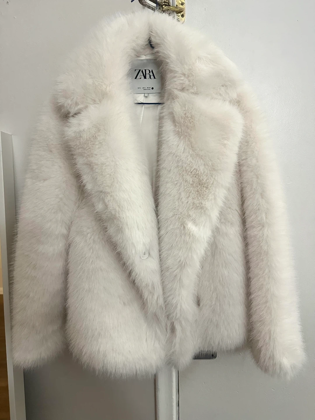 Cozy white faux fur jacket from Zara. It's a size S. This coat will keep you warm and stylish during colder months!
