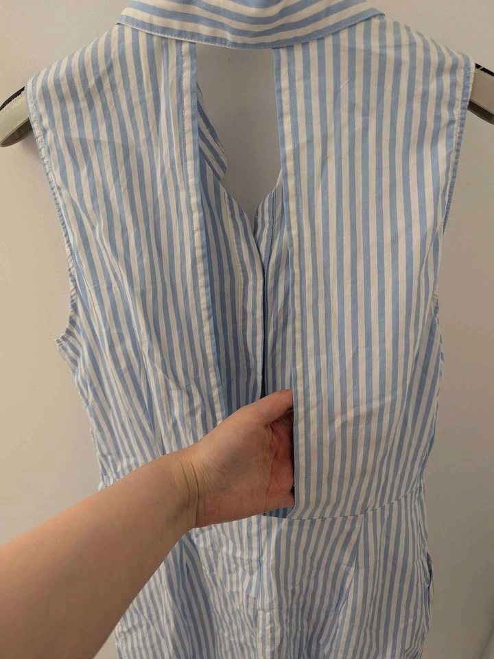 Sleeveless button up backless dress. Pockets on both sides.