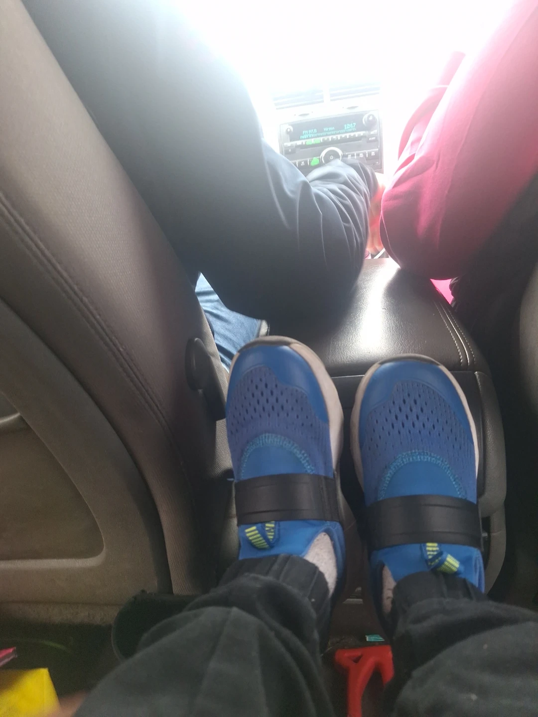 These blue athletic shoes feature a breathable mesh upper and a secure strap closure. They have a comfortable fit for everyday wear. Good for light activity or casual use.