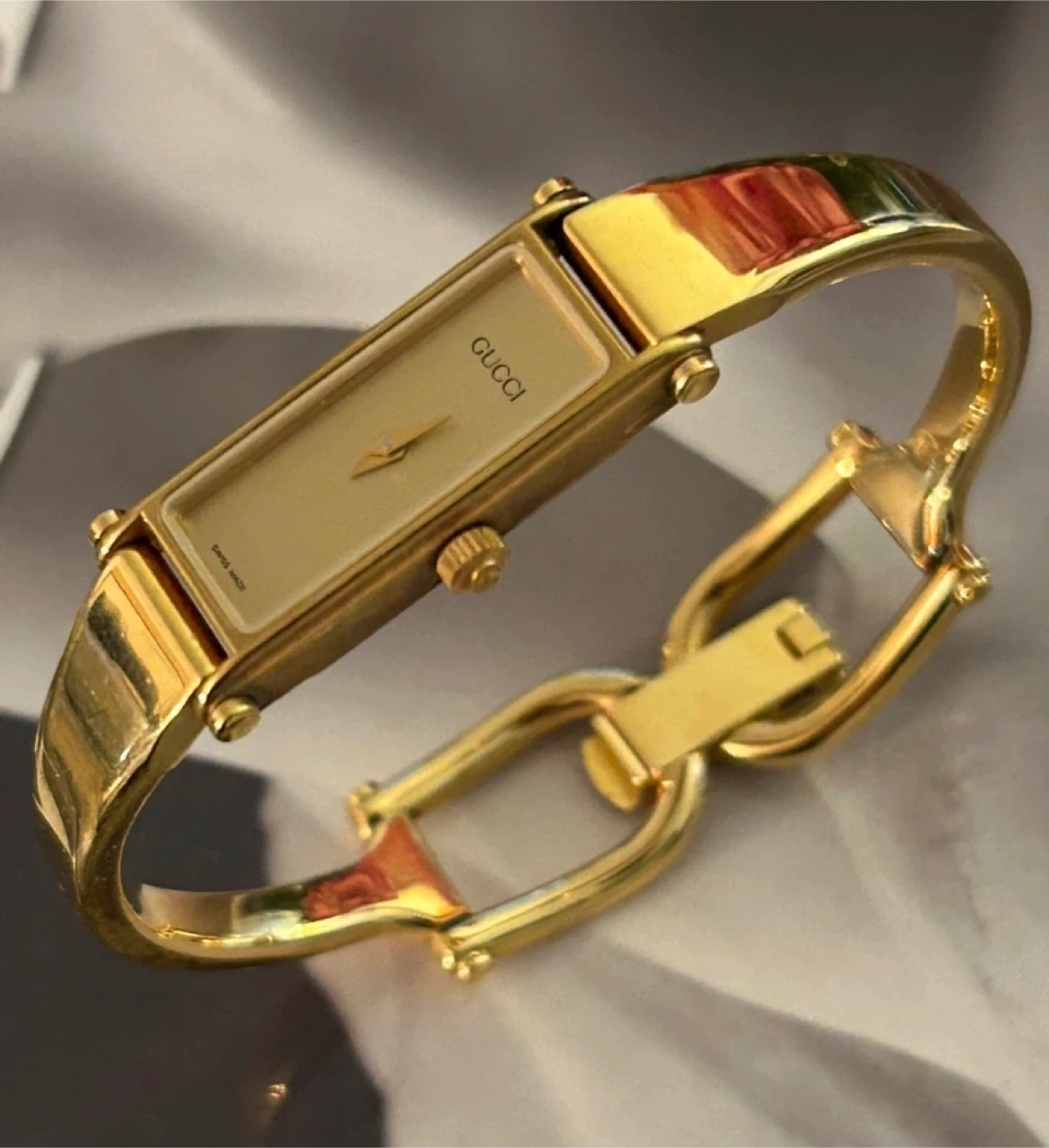 The Gucci 1500L blends Italian luxury with Swiss precision. Its slim rectangular design and subtle gold finish make it a versatile and iconic accessory perfect for both everyday elegance and formal occasions.