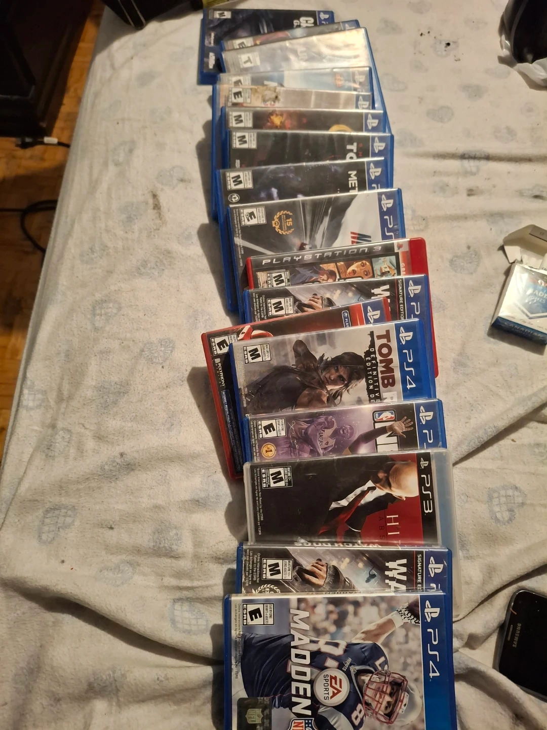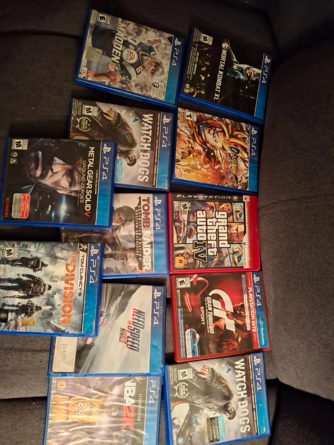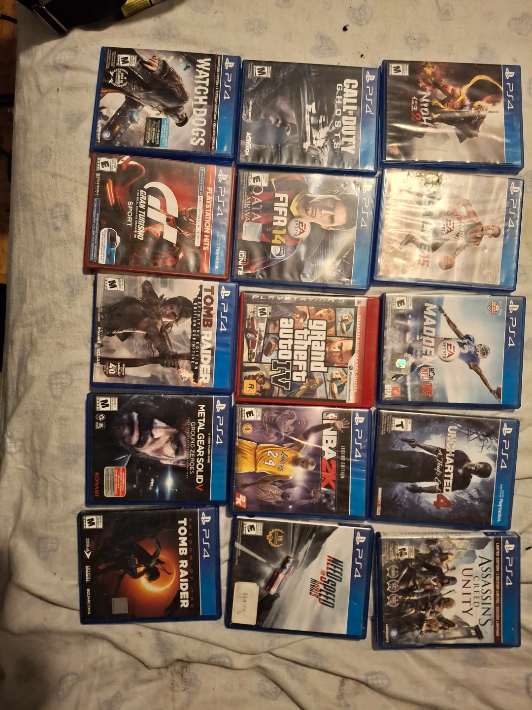 Selling a collection of PS4 and PS3 video games. Includes titles like Grand Theft Auto V, Call of Duty, Madden NFL, and more. Games are sold as a lot, condition varies.