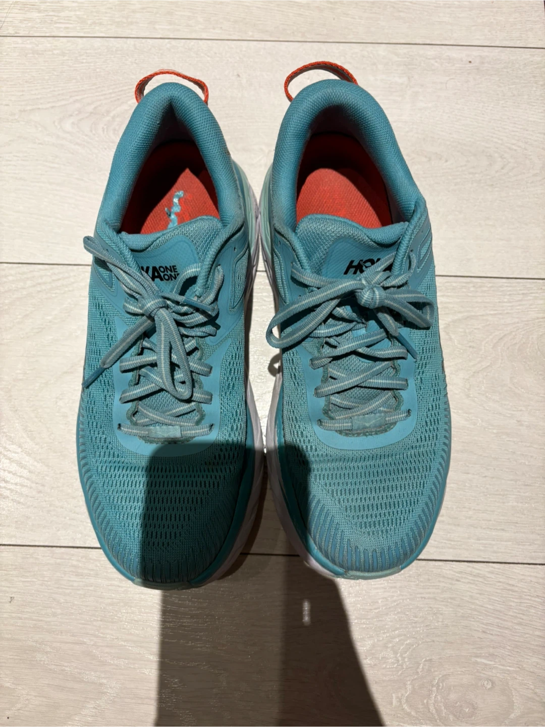Great condition Hoka runners size 9 women or men’s 7.5. Hardly worn, I have too many shoes! Turquoise green. Hardly any wear in the tread. Pickup near Sherbourne and Adelaide St East or sometimes at some TTC stations.