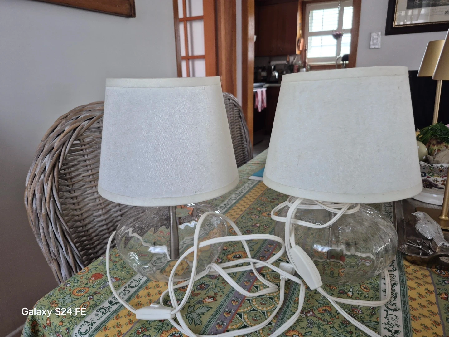 Clear Glass Accent Lamps with White Shades