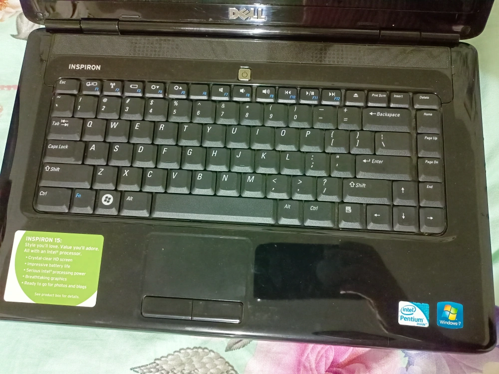 Features a full keyboard and touchpad. The lid has a glossy finish. Use this laptop to stay connected and enjoy all your digital hobbies.