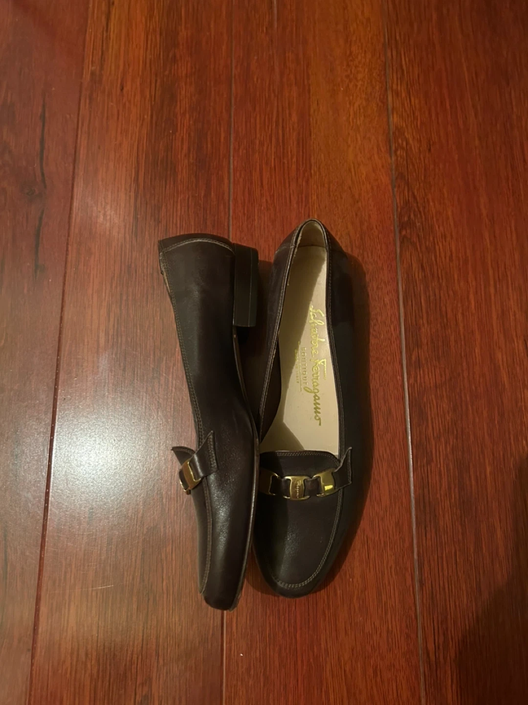 Classic Salvatore Ferragamo loafers in a rich brown leather! These shoes feature the iconic gold-tone hardware detail. Perfect for adding a touch of elegance to any outfit. They are in great condition!