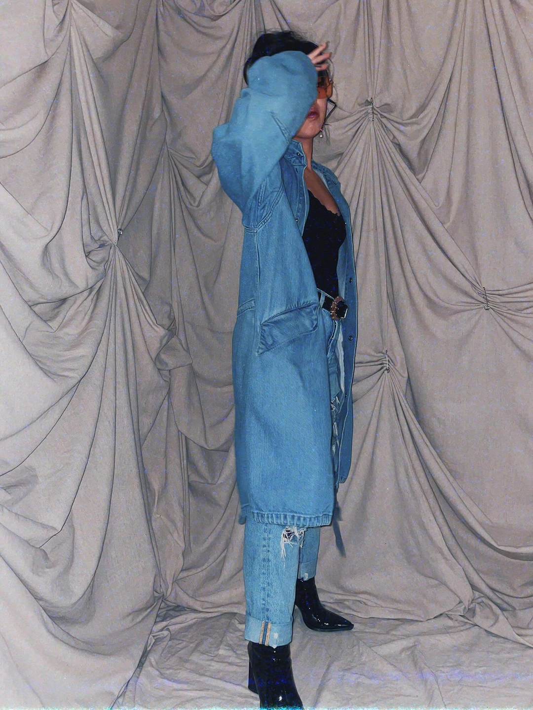 blue midi denim long coat jacket outerwear parka
