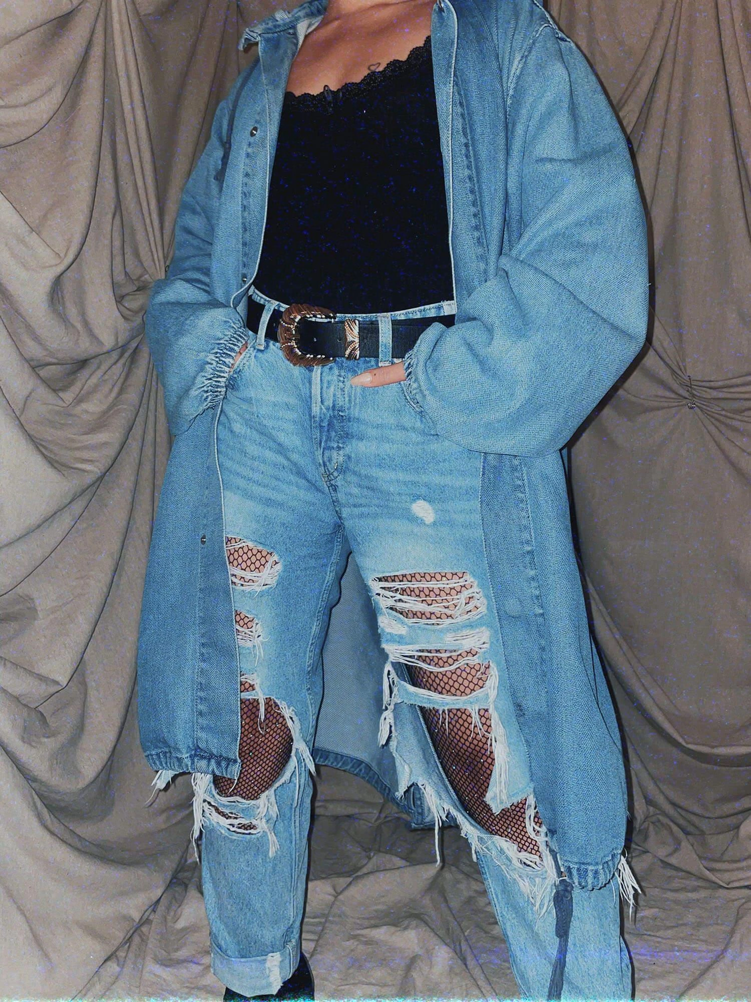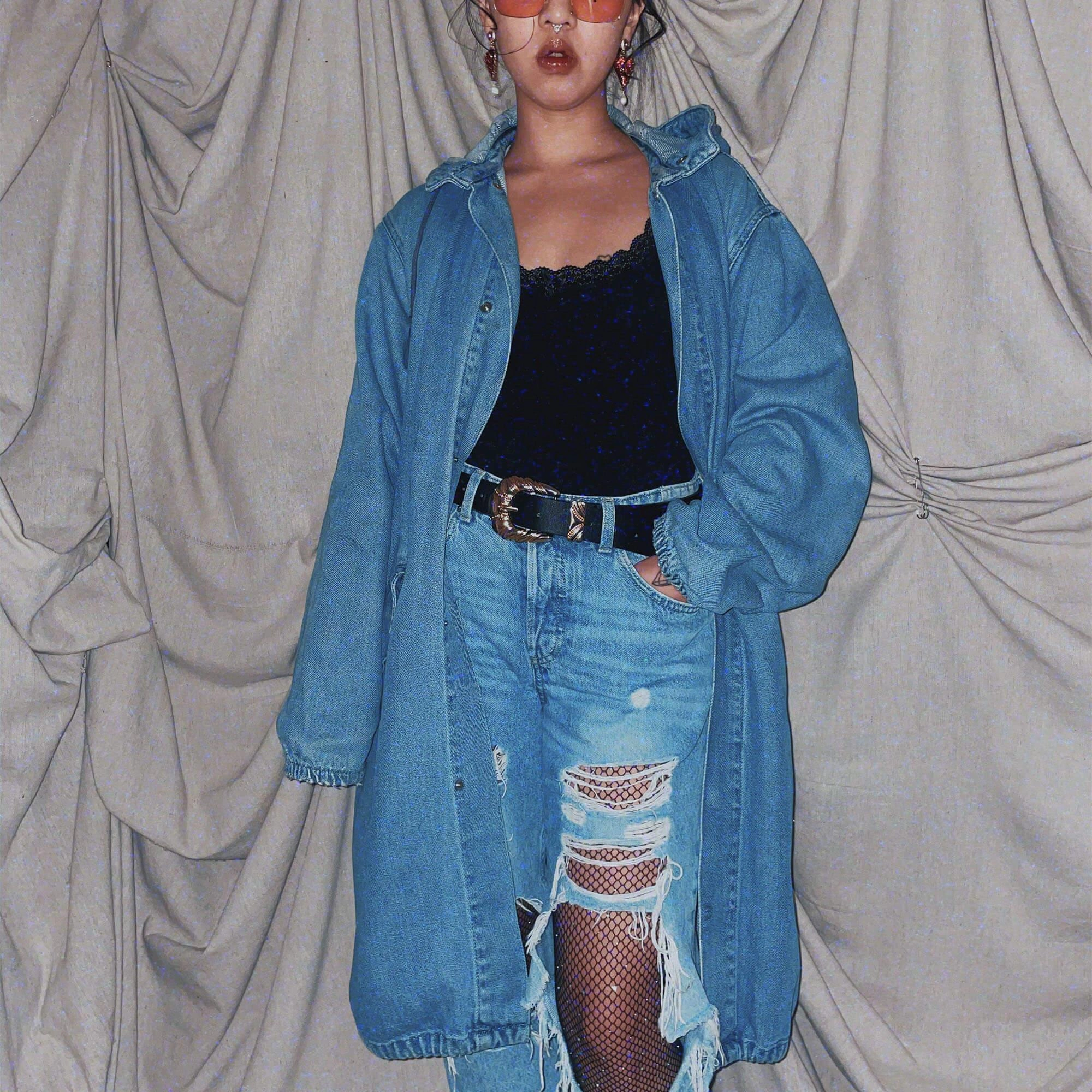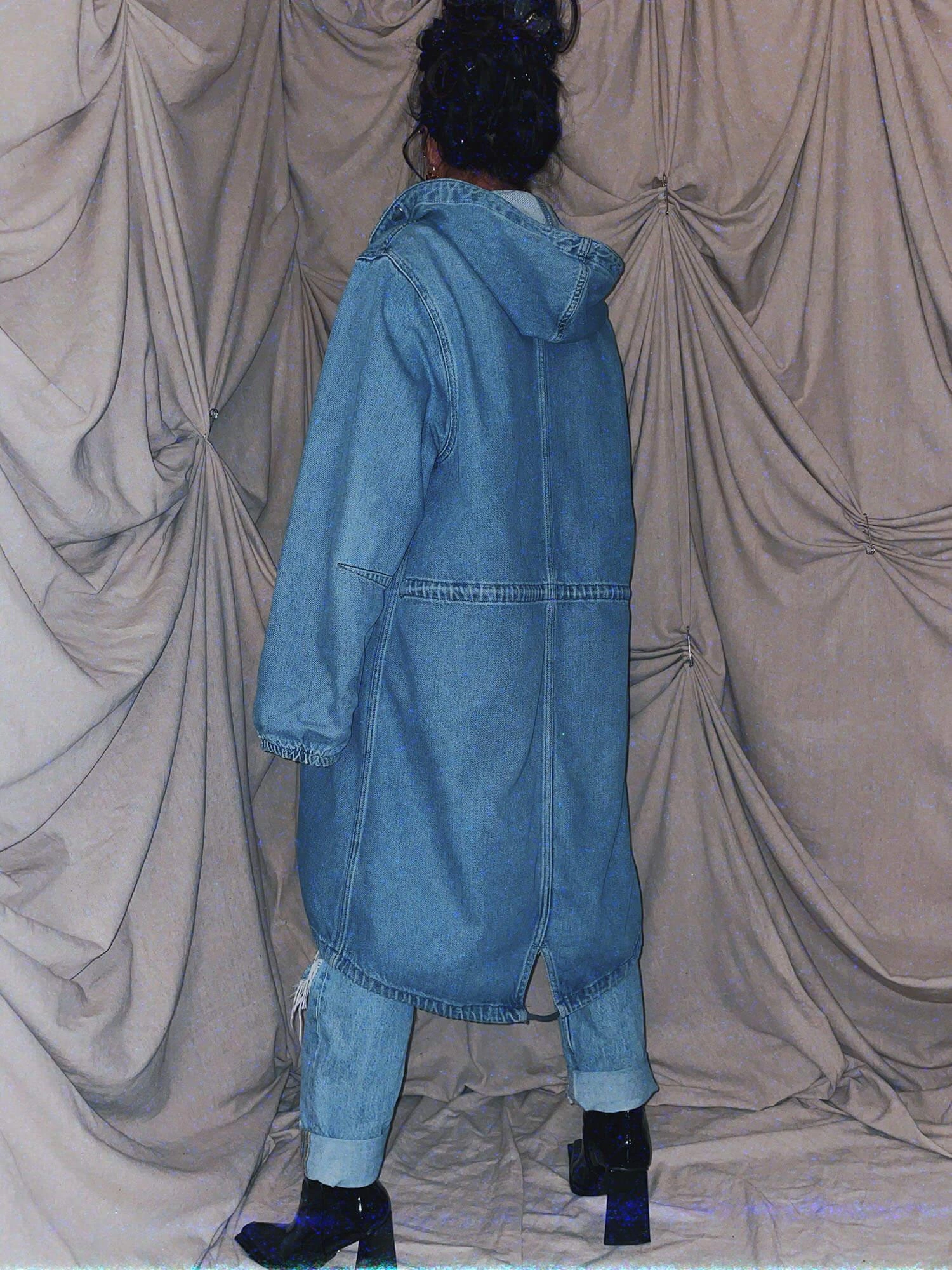 blue midi denim long coat jacket outerwear parka