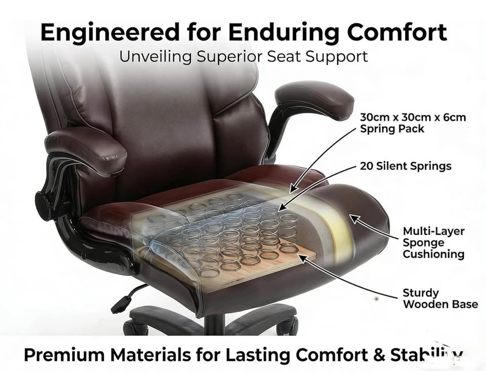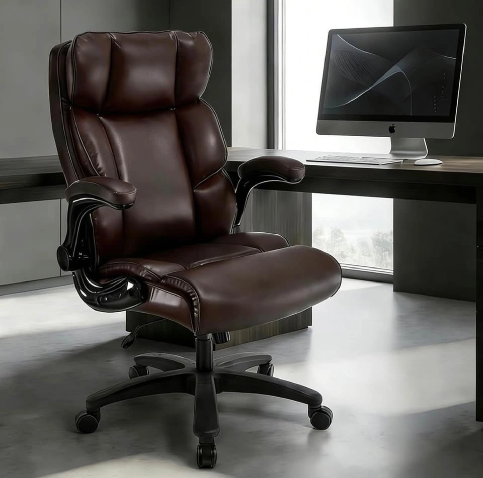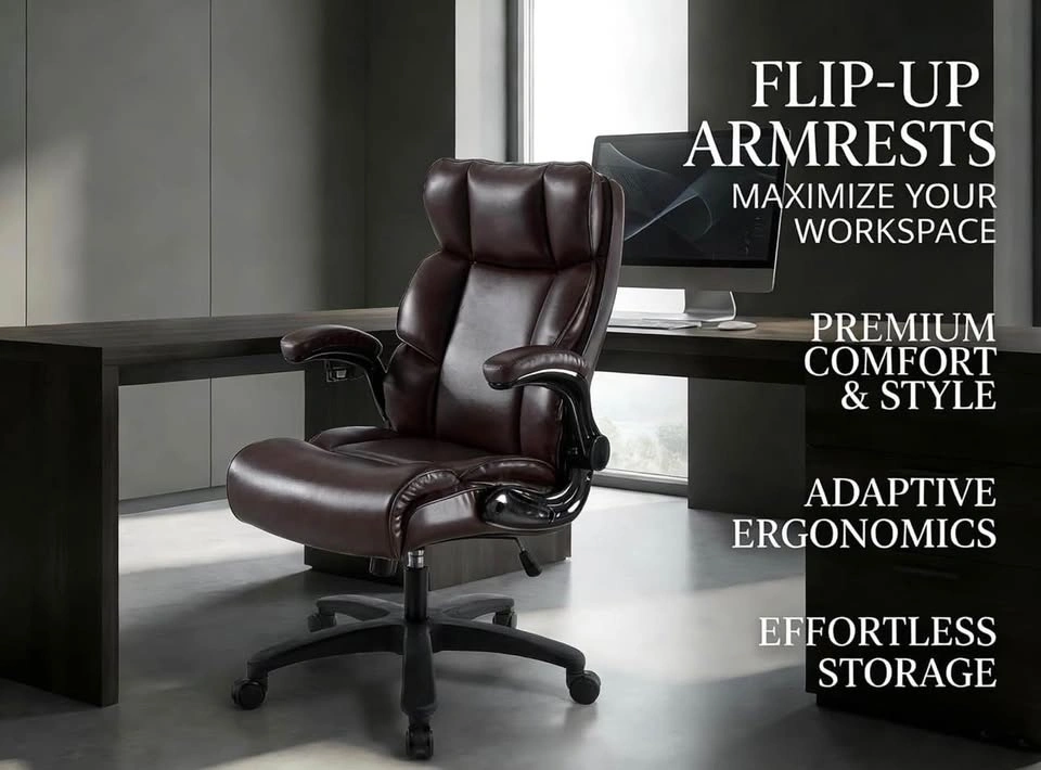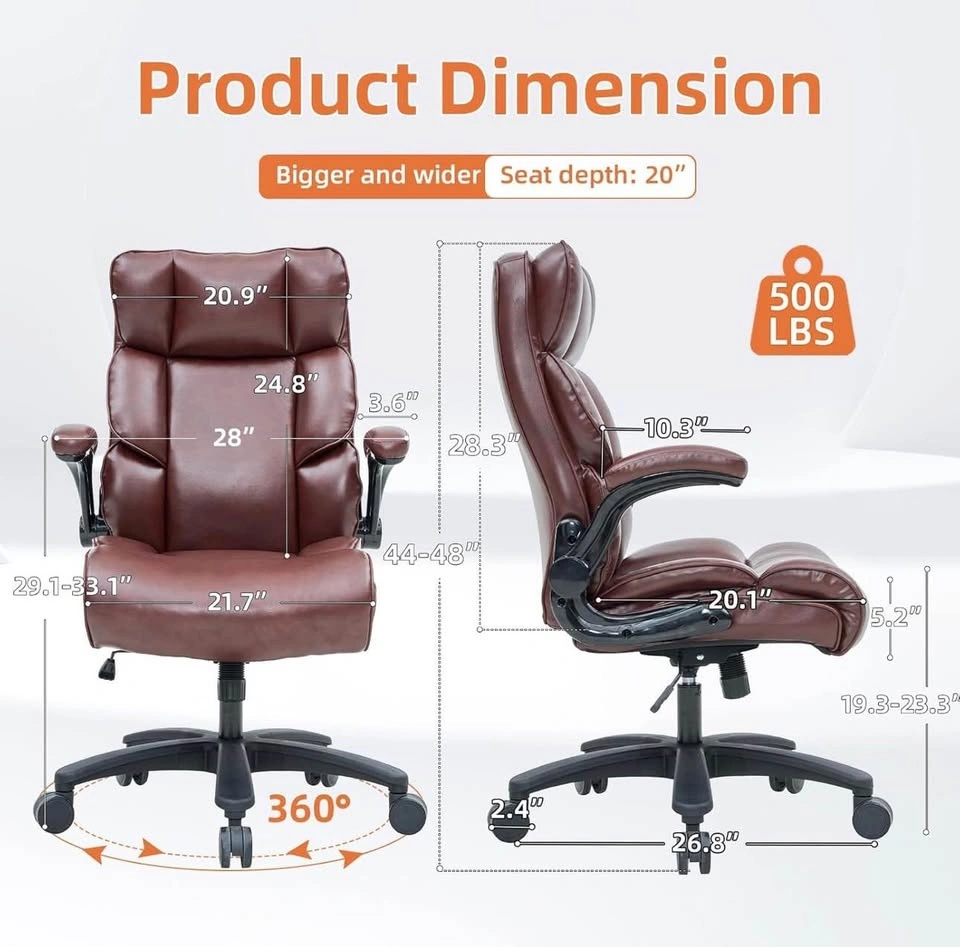 Brand new big and tall executive office chair with 500 lb weight capacity. Heavy-duty design with PU leather, adjustable height, and flip-up armrests. Comfortable and durable for office, gaming, or home use.