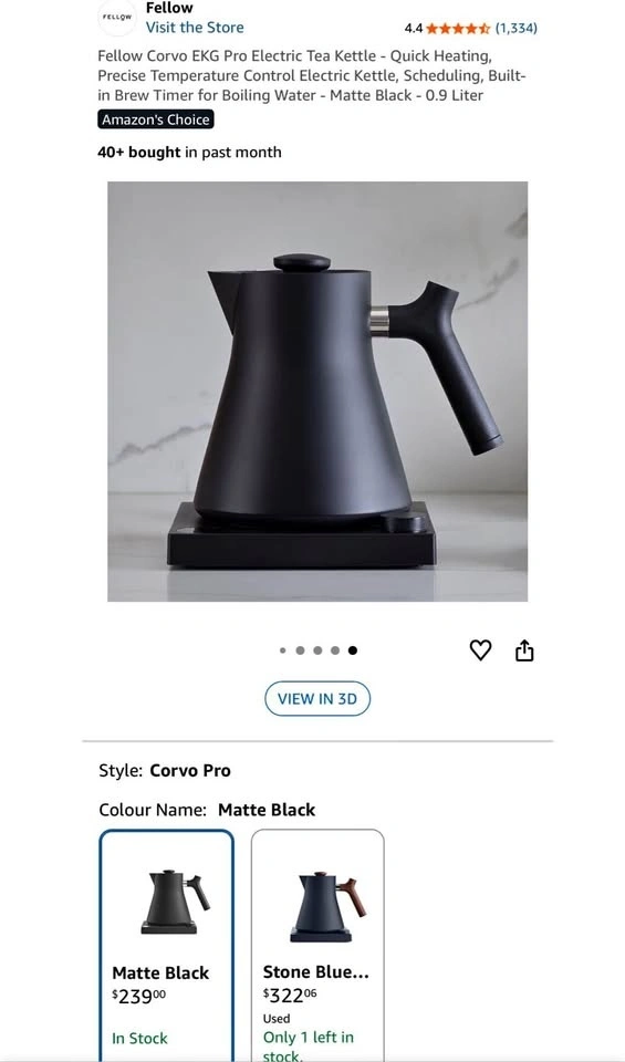 Brand new sealed Fellow Corvo EKG Pro electric kettle. Quick heating with precise temperature control, scheduling, and built-in brew timer. Premium matte black design. Perfect for tea, coffee, and everyday boiling.
