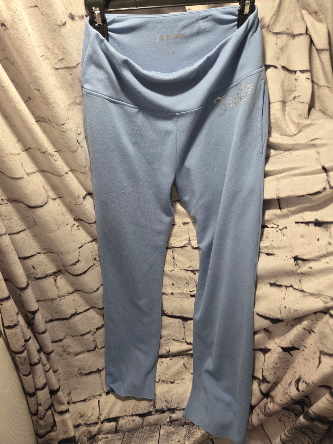 Light blue Juicy Couture sweatpants with rhinestone logo detail. Size medium. These pants are comfy and stylish!
