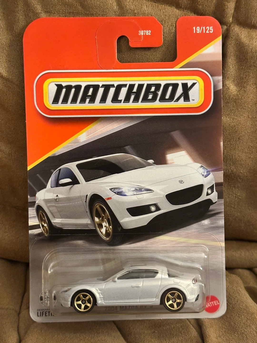 This is a Matchbox die-cast toy car featuring the 2004 Mazda RX-8. It's a detailed replica in a silver finish. Great for collectors or for kids aged 3 and up!