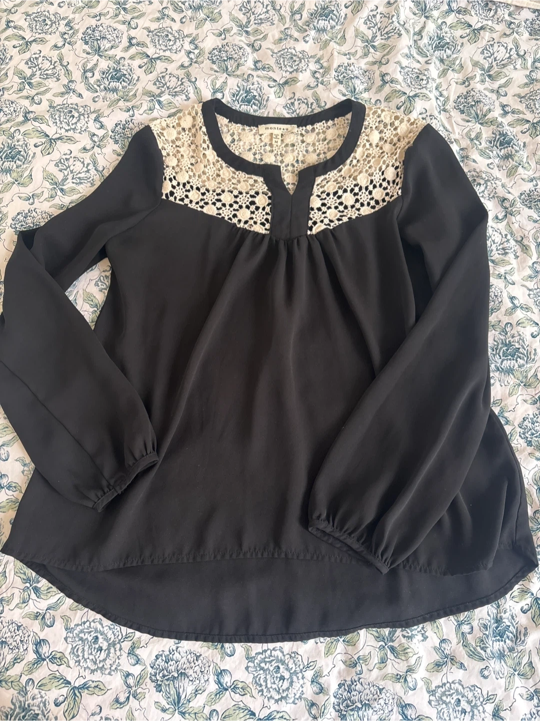 Buy & SellBlack Crochet Long Sleeve Blouse - MediumBlack Crochet Long Sleeve Blouse - Medium$10Monteau black blouse with a crochet yoke detail. Size medium, long sleeves. Pick up in the Beaches at Queen and Victoria Park. ConditionLike newSizeMBrandMonteauWHERE TO MEETCheck LocationView MapSELLERverifiedEliseThe Beaches71662 reviews0 chats·0 favorites·1 viewsSEND CHAT TO SELLERHi Elise! I’m interested in your listing.Hi Elise! I’m interested in your listing.Get the Karrot app to chatSign In to chat