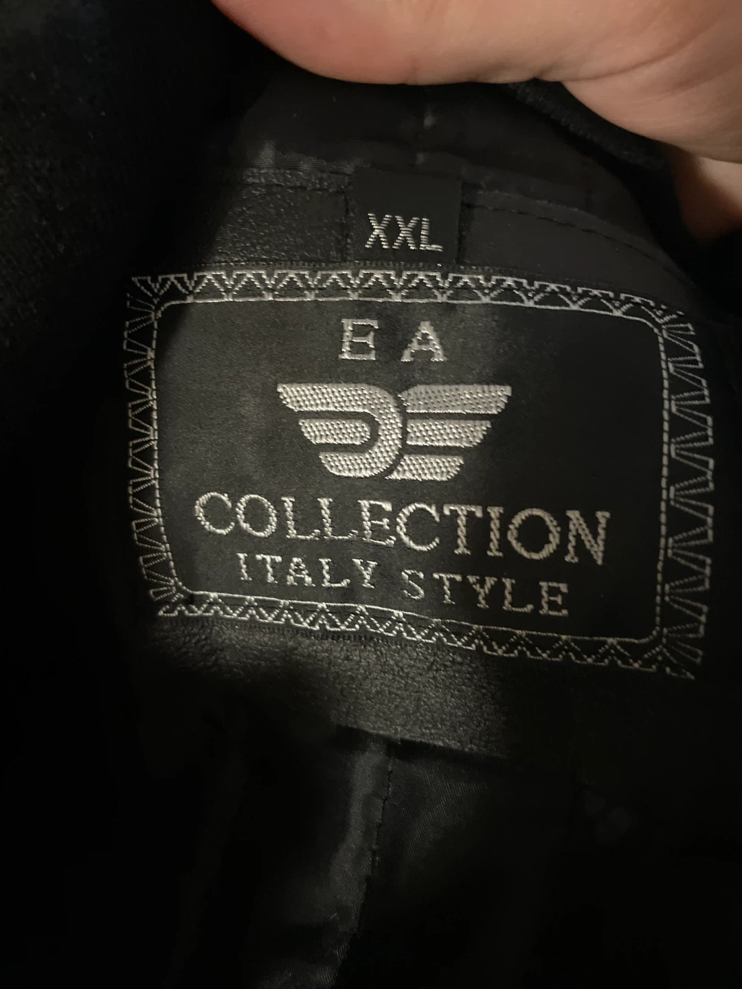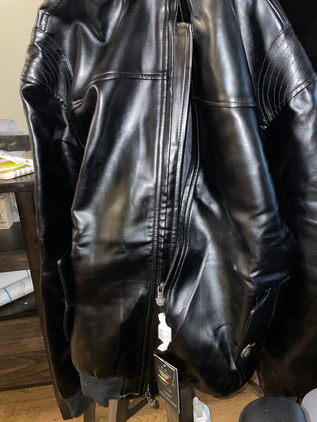 EA Collection faux leather bomber jacket in black. Size XXL. Italy Style, Last Collection.