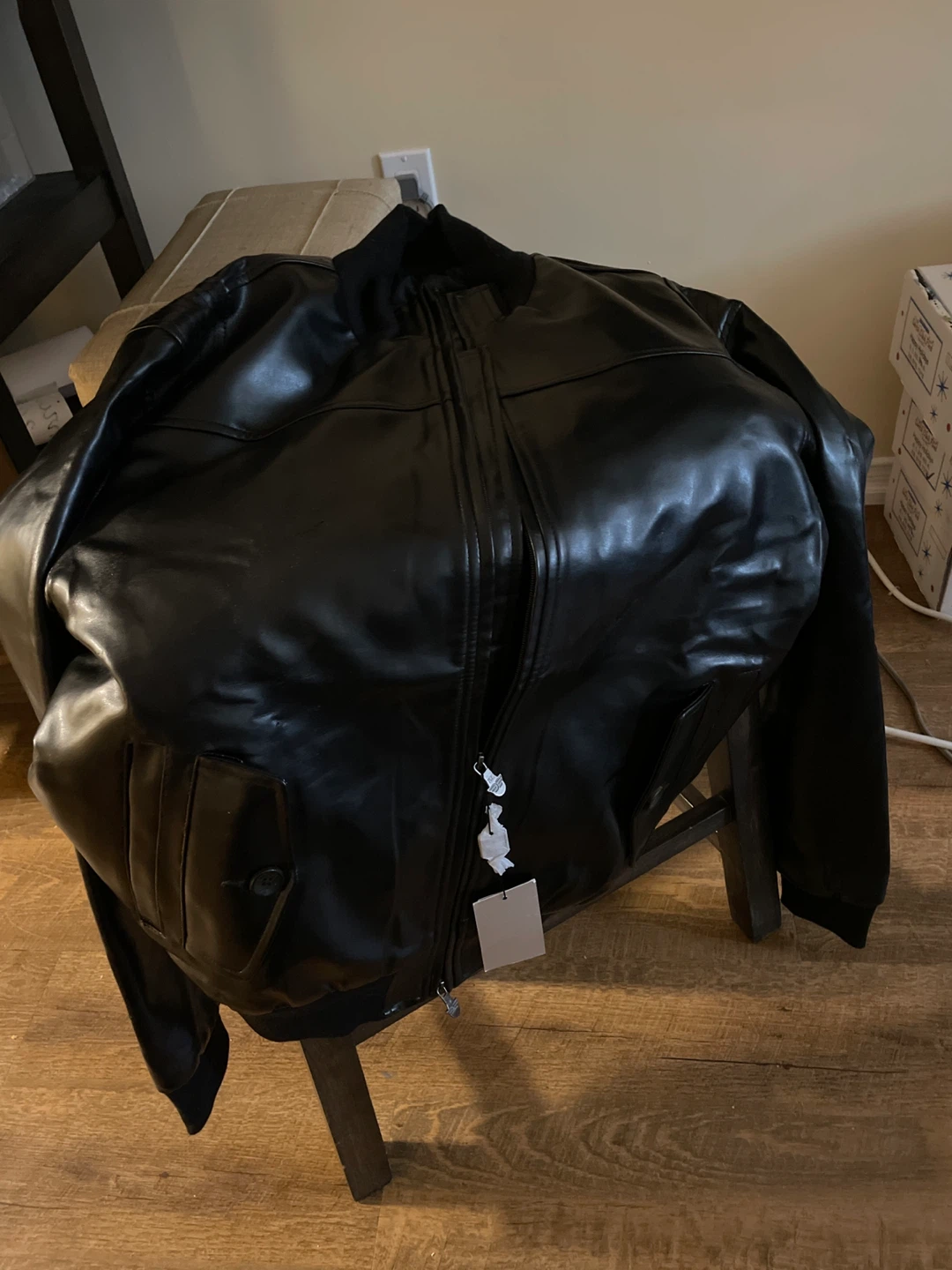EA Collection faux leather bomber jacket in black. Size XXL. Italy Style, Last Collection.